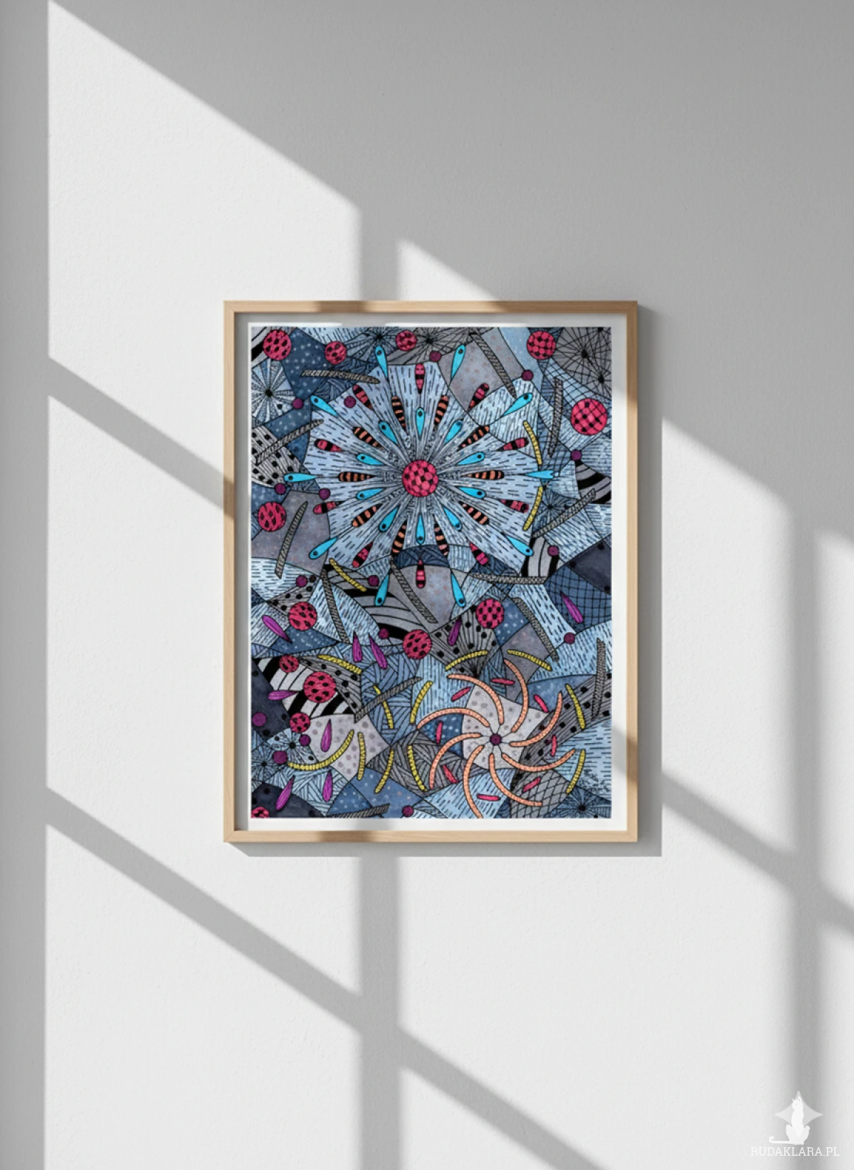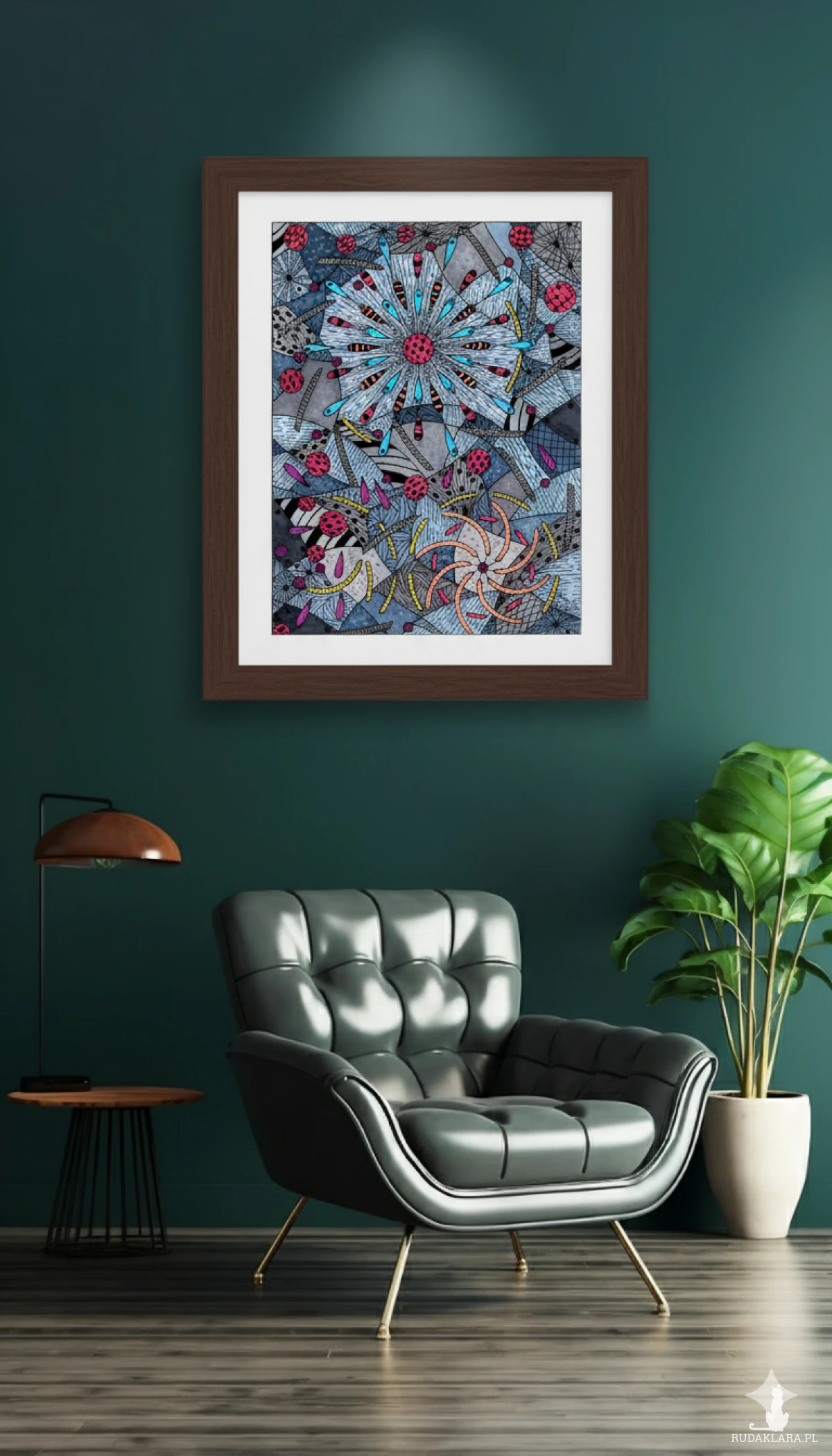 Wydruk autorskiego rysunku na satynowym papierze o gramaturze 200g/m2 - sprzedawany bez ramki - rysunki w ramkach na zdjęciach to wizualizacje.