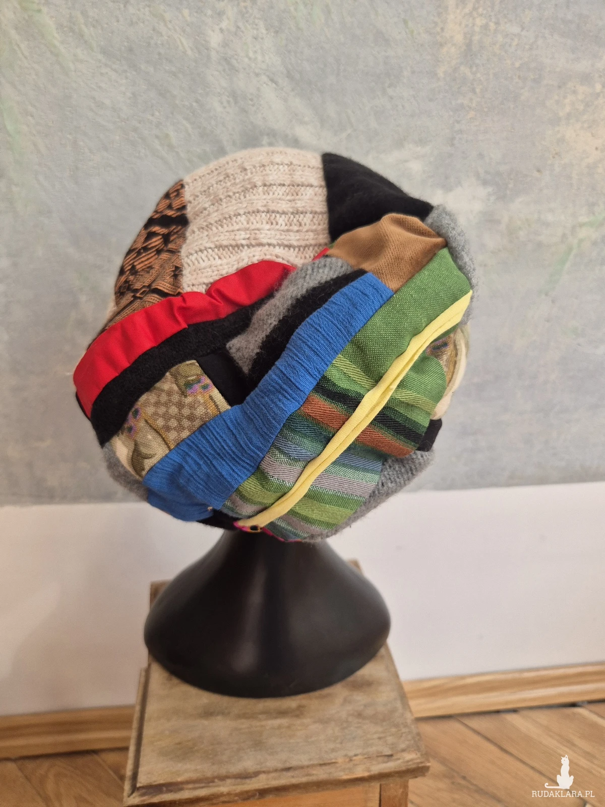 Czapka na podszewce kolorowa patchworkowa rękodzieło świetna na codzienne noszenie polecam rozmiar uniwersalny Box d1
