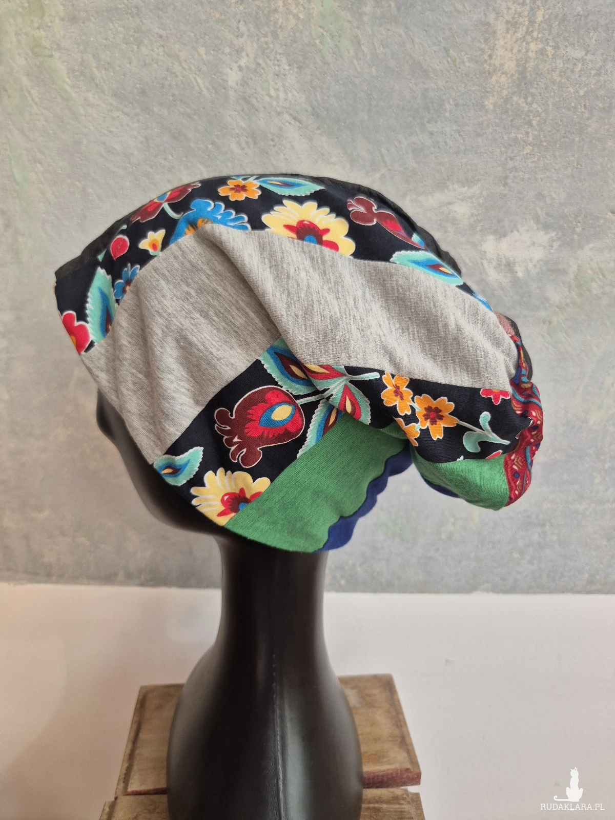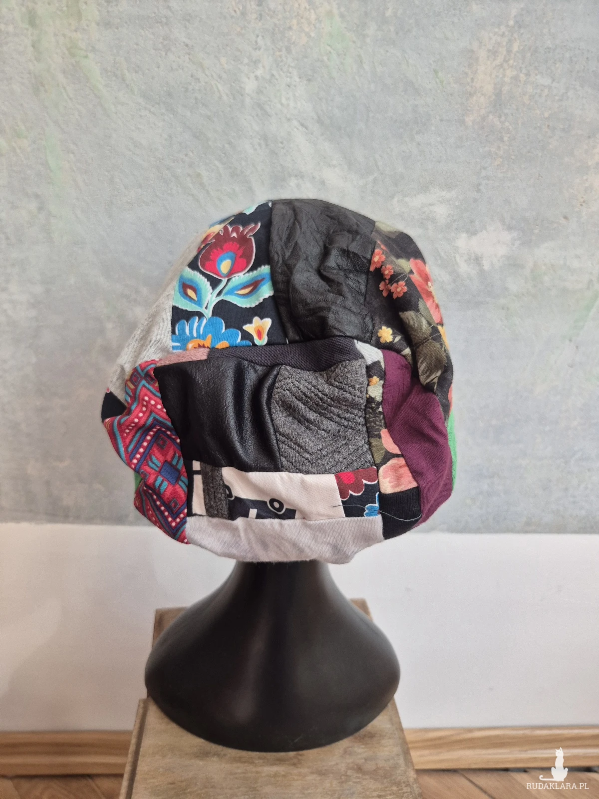 Czapka na podszewce kolorowa patchworkowa rękodzieło świetna na codzienne noszenie polecam rozmiar uniwersalny Box d1