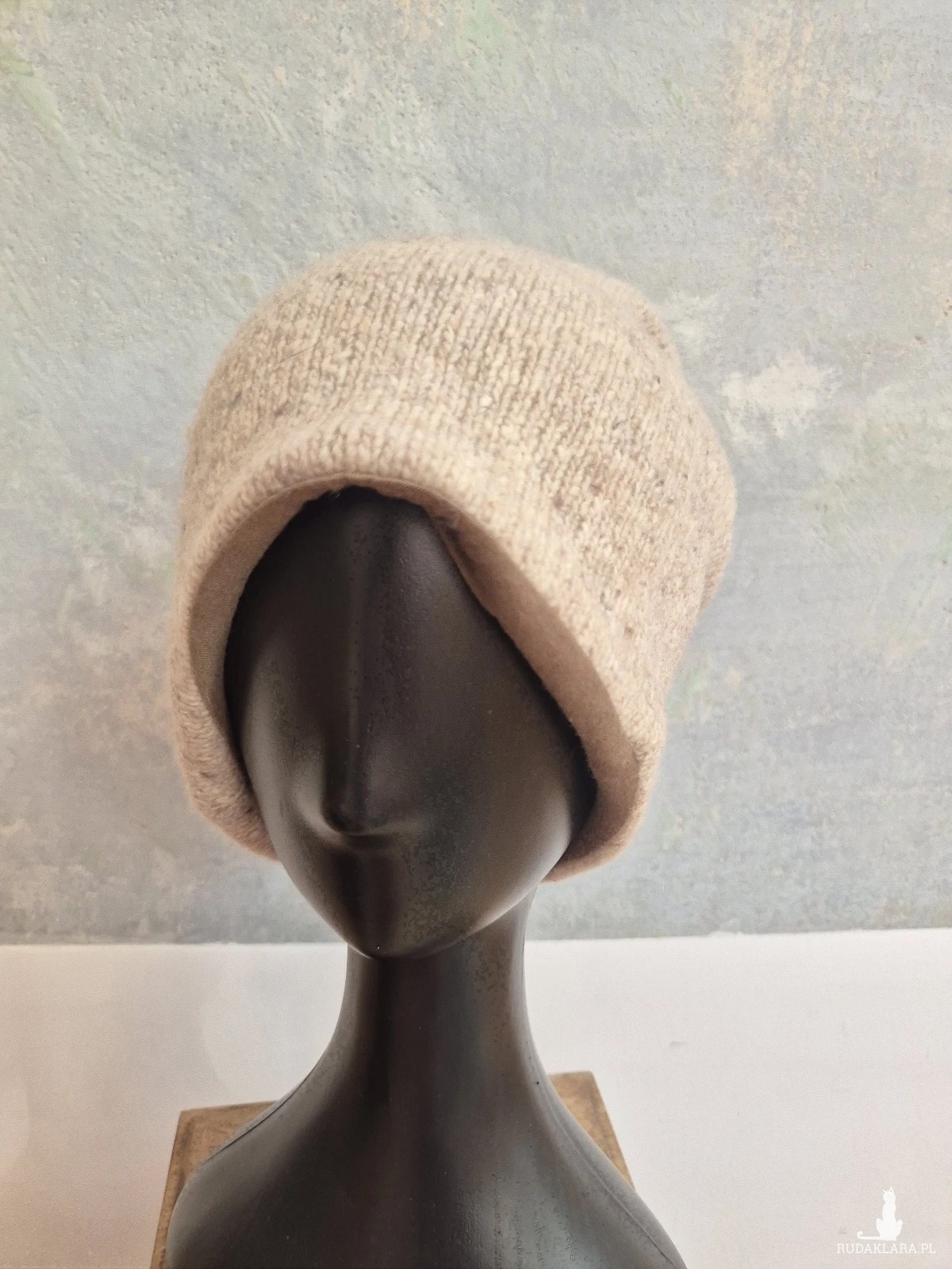 Czapka wełniana beżowa  na podszewce rozmiar uniwersalny  ,smerfetka ,damsko męska,box d1