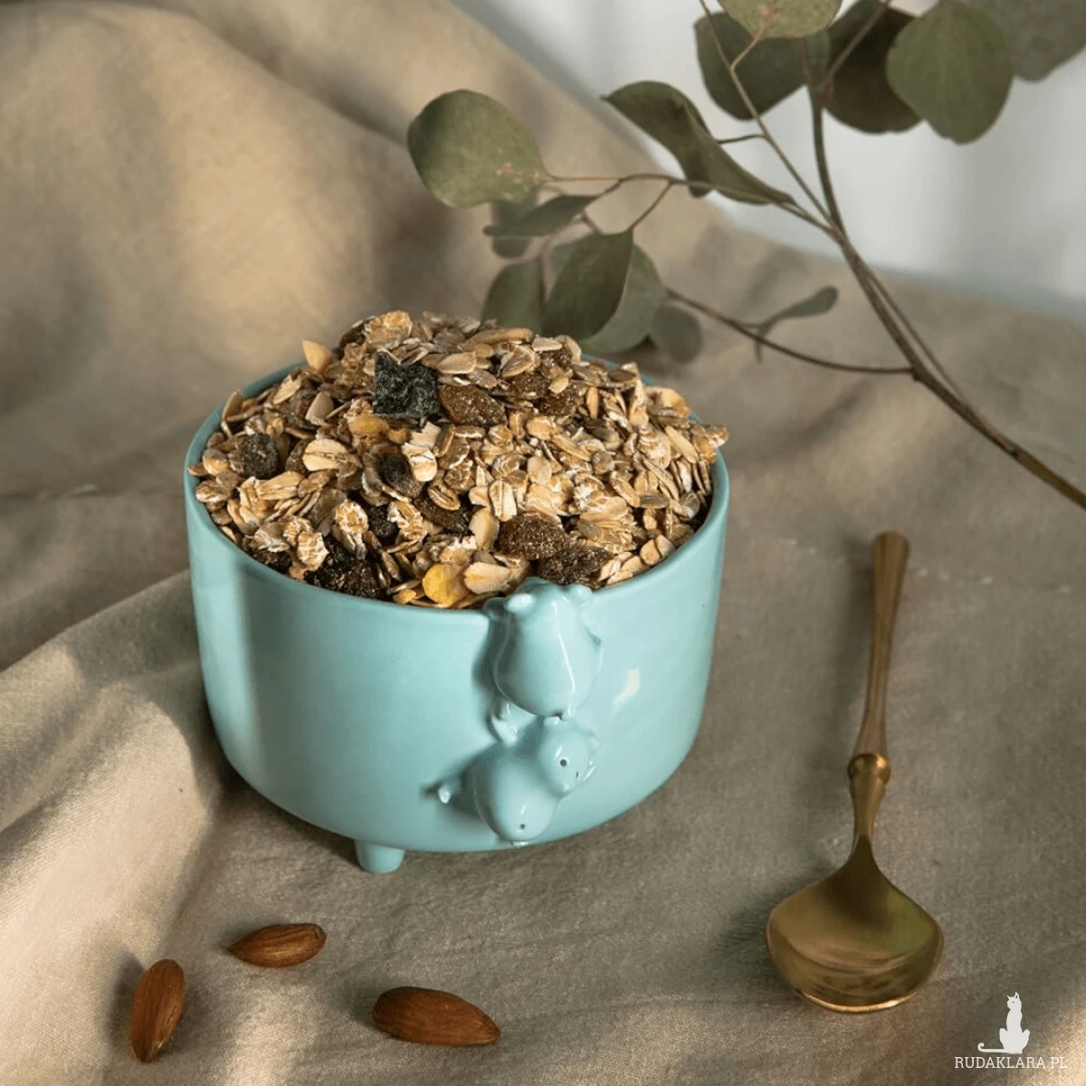 Ręcznie robiona, miętowa miseczka śniadaniowa, po której wspinają się dwa urocze misie. Miseczka ceramiczna, w której możesz przechowywać owoce, słodycze. Może schować w niej swoje drobiazgi, czy wykorzystać ją jako ozdobę.