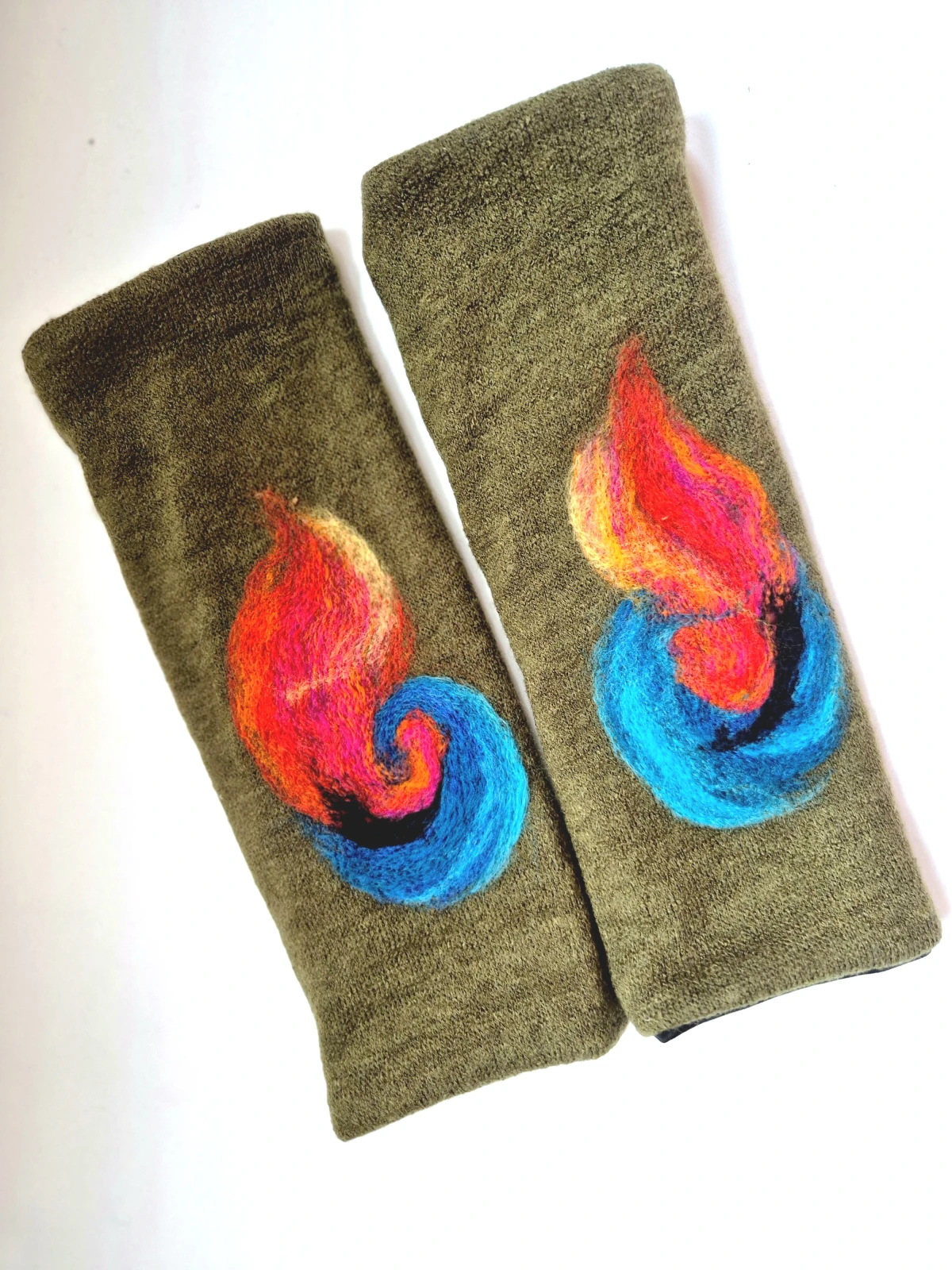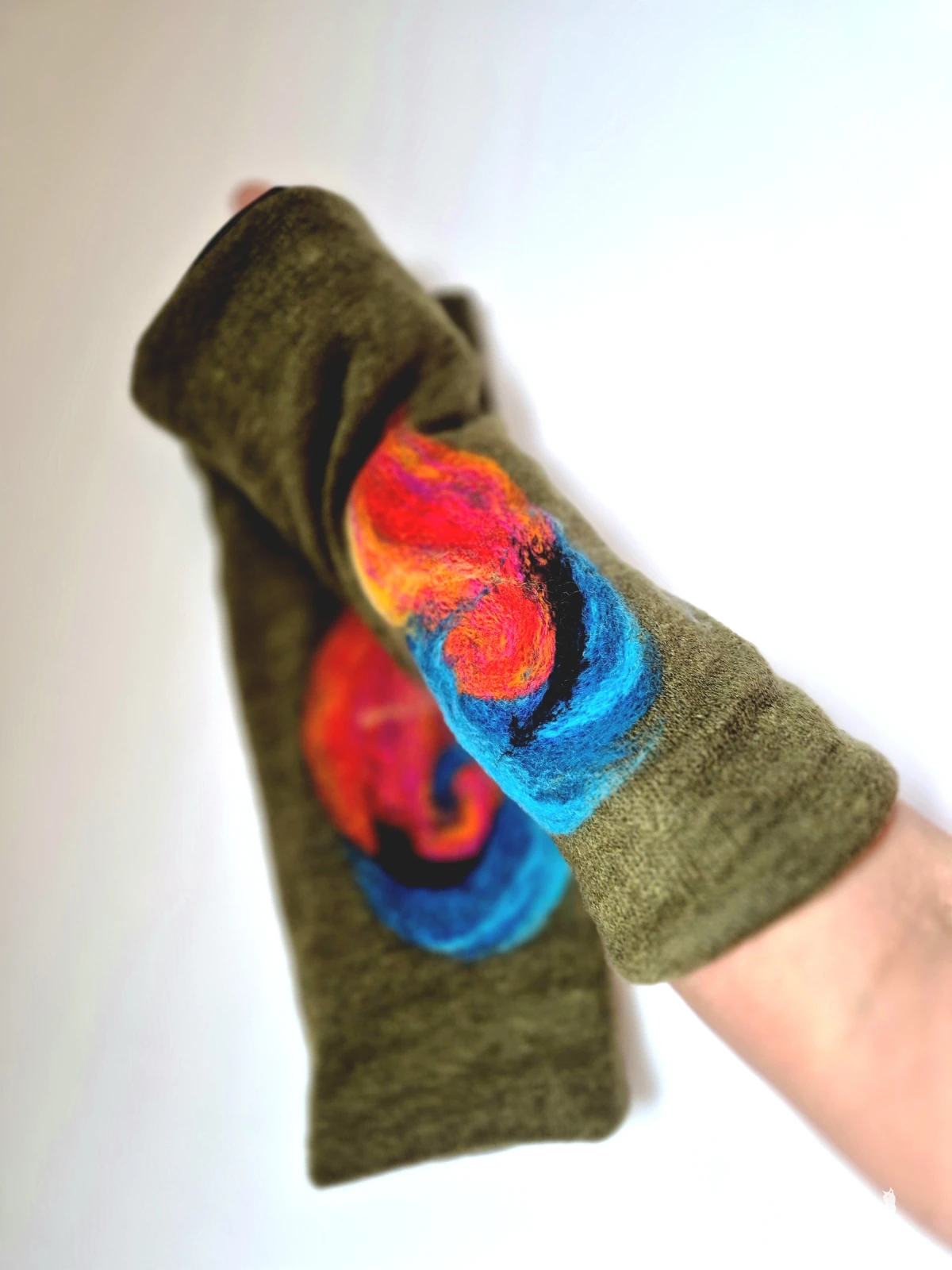 mitenki w kolorze zielonym filcowane wełna merynosów - na podszewce, ciepłe i miłe  box L1