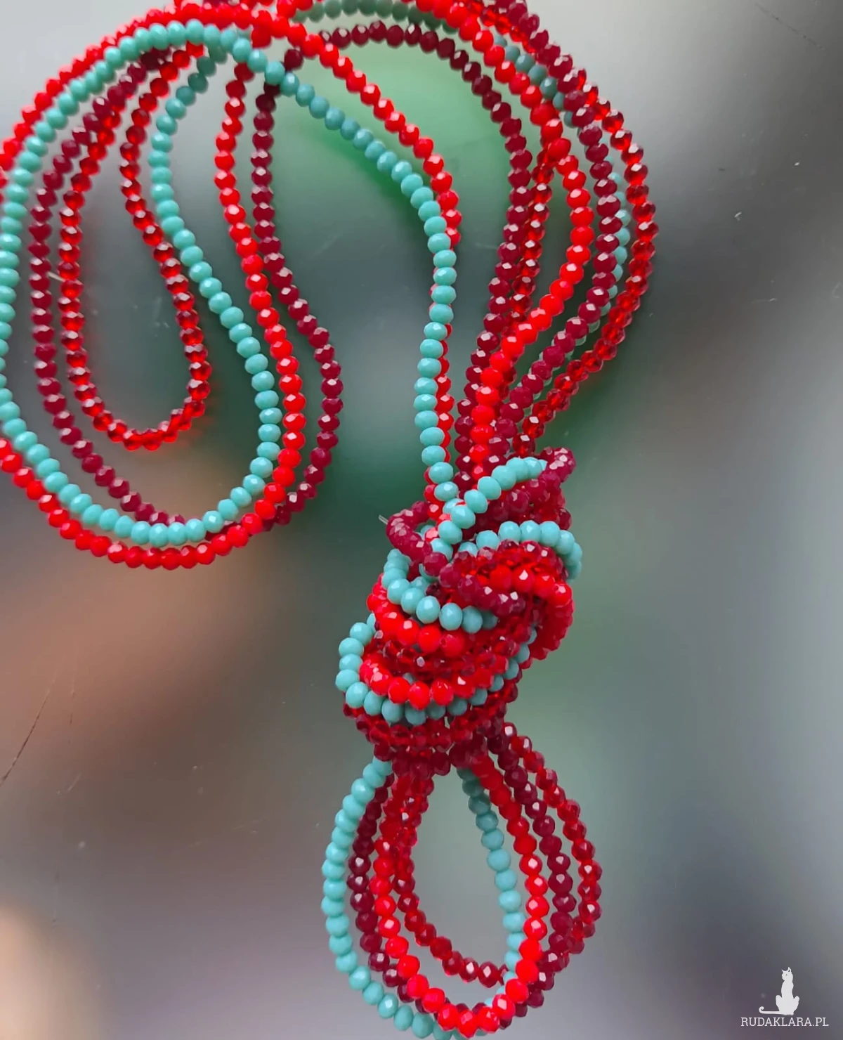 Naszyjnik Korale Sznury Kryształki Czerwone Turkusowe
