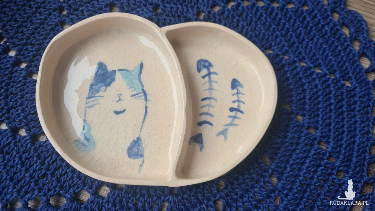 Ceramiczny pojemnik z kotem. Dwukrotnie wypalany w piecu, malowany ręcznie i szkliwiony. Dla kociarz na biżuterię lub inne drobiazgi.