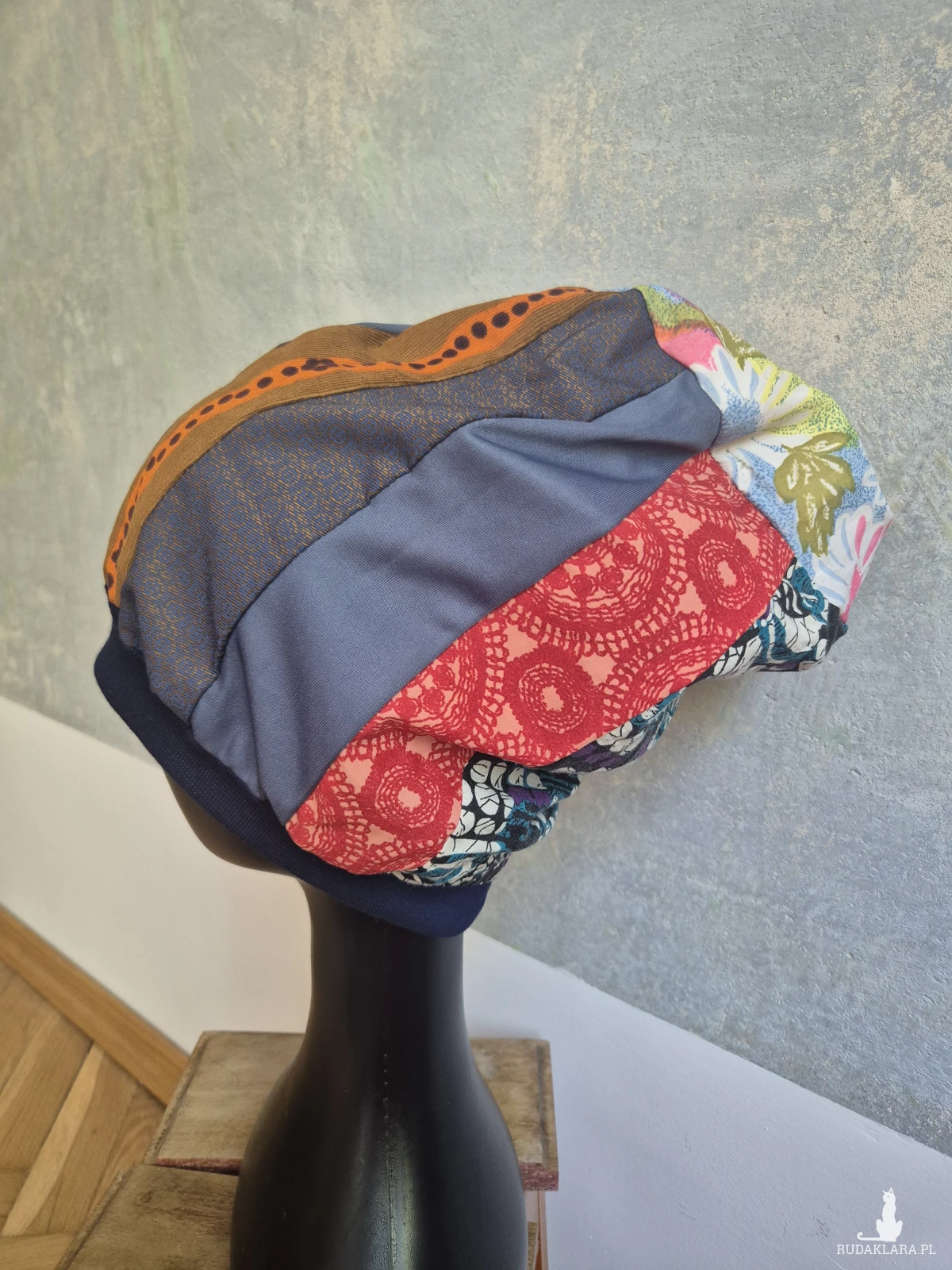 Czapka na podszewce kolorowa patchworkowa rękodzieło świetna na codzienne noszenie polecam rozmiar uniwersalny Box L1