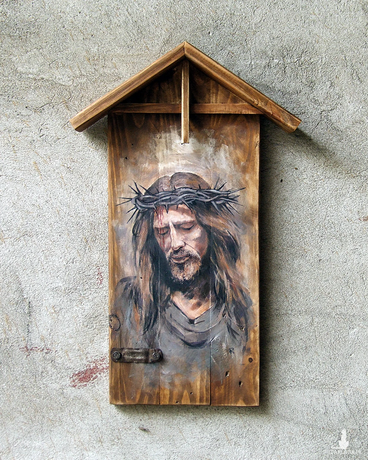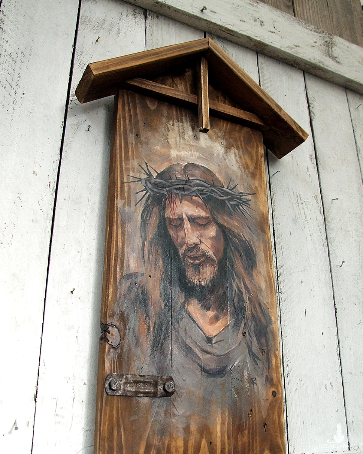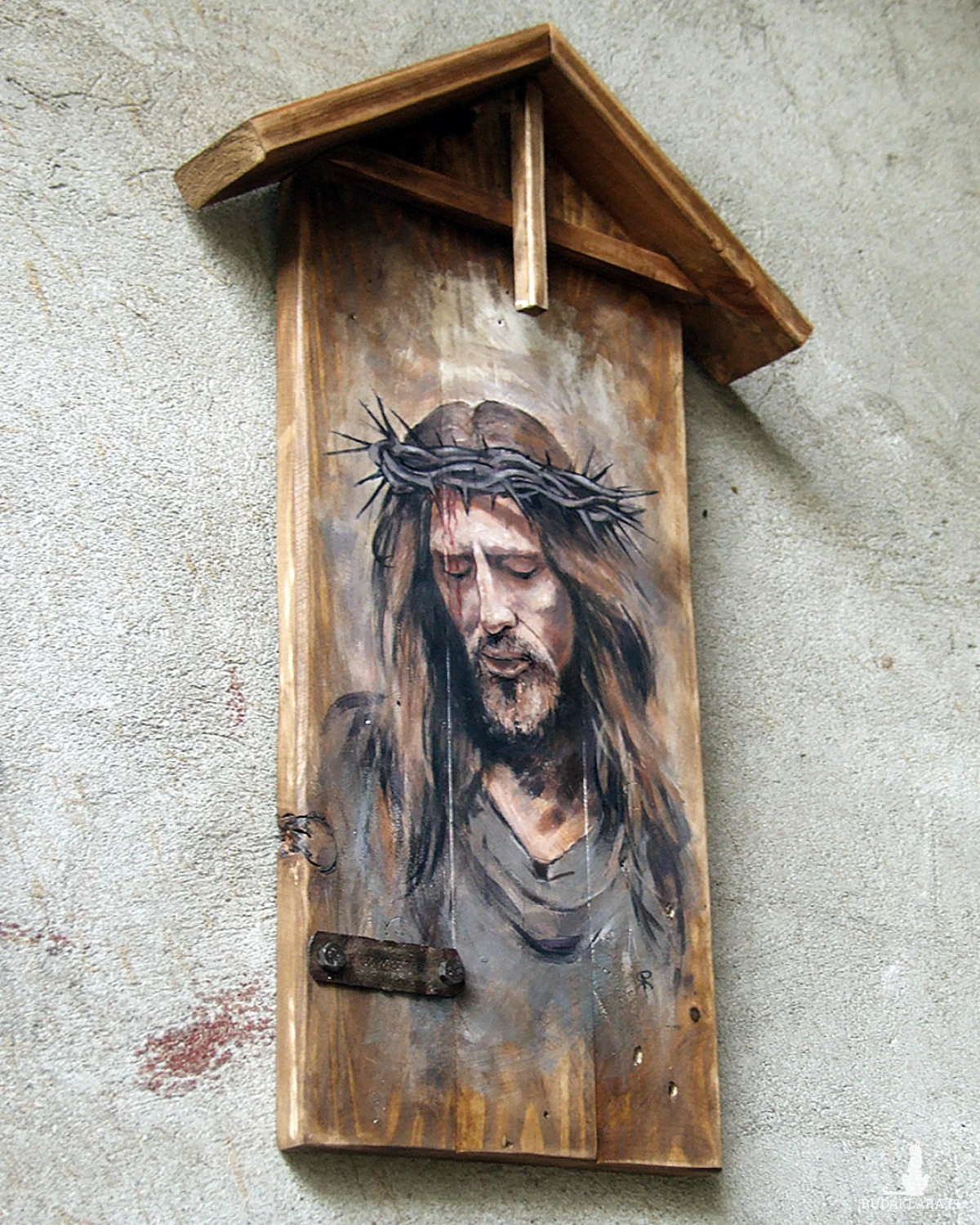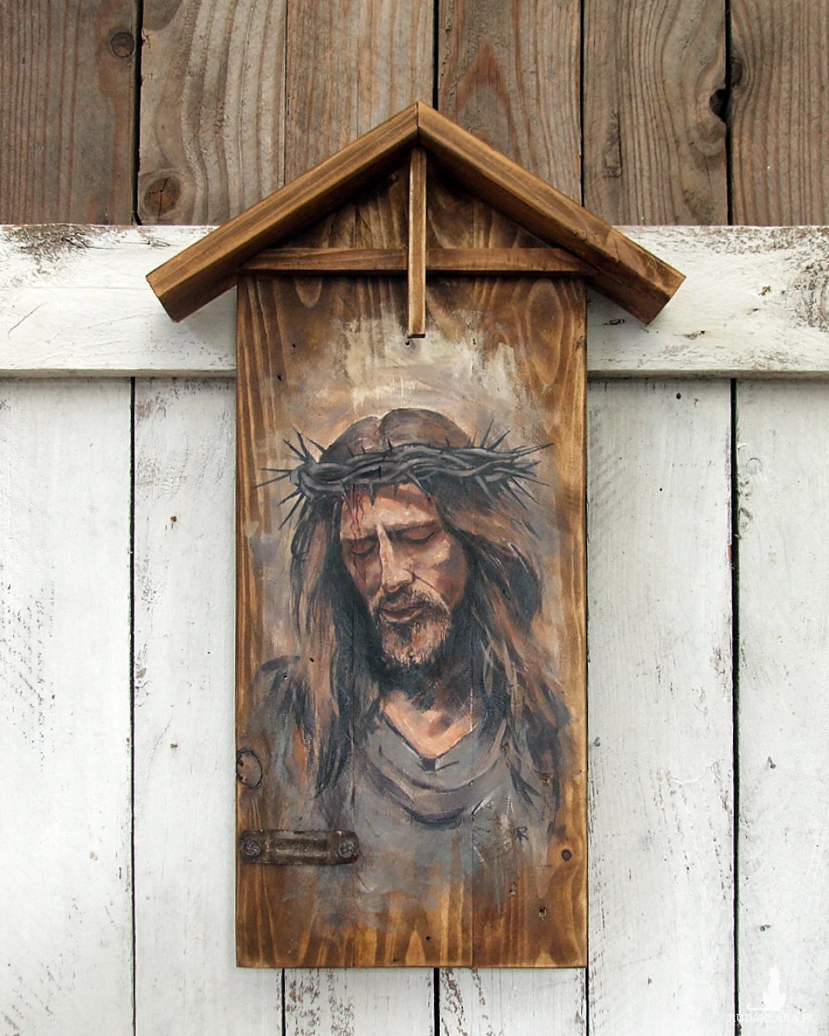 Chrystus w cierniowej koronie - obraz malowany na starych deskach.