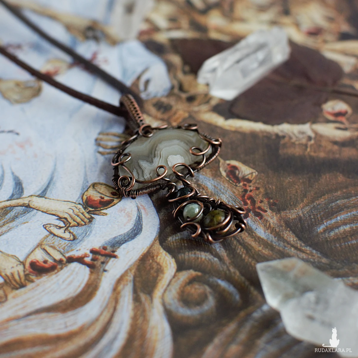 Biżuteria artystyczna z duszą wykonana ręcznie techniką wirewrapping z użyciem kamieni półszlachetnych, skamielin, żywicy i szkła; z dbałością o szczegóły i z sercem. Biżuteria dla osób lubiących się wyróżniać i tych z miłością do przedmiotów jedynych w swoim rodzaju. Niepowtarzalne dodatki wnoszące odrobinę piękna i radości, a także szczyptę magii do codzienności