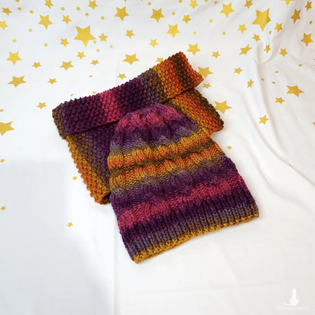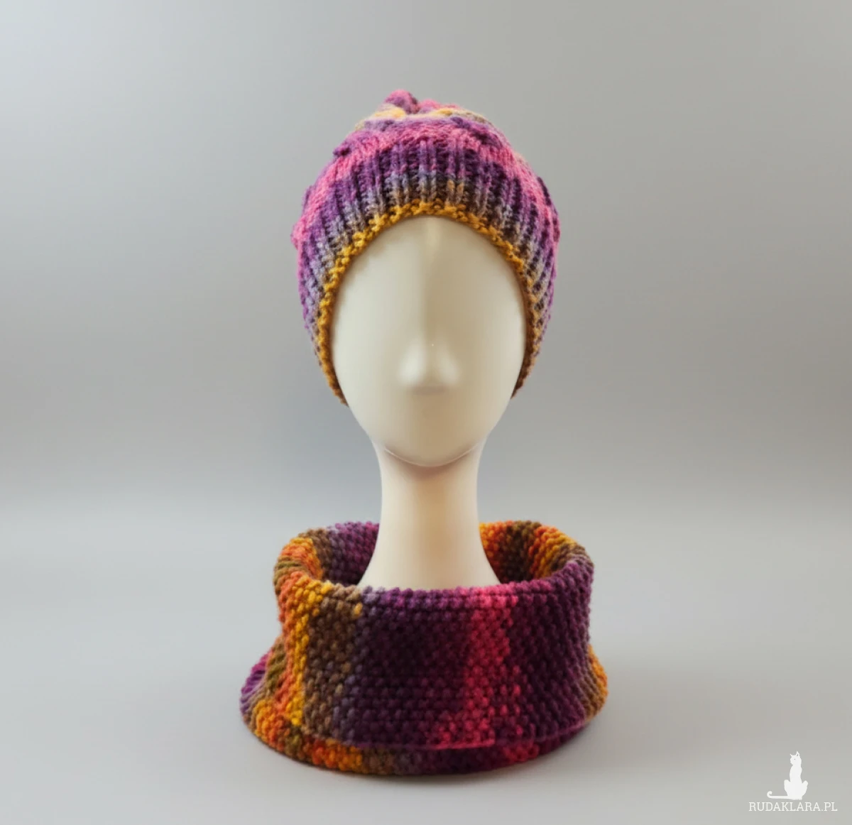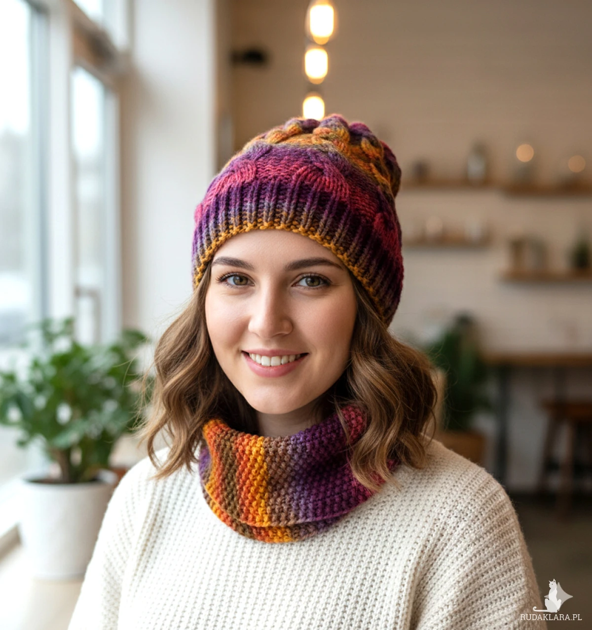 6916 Dzianinowy Zestaw Winter Sunset: Czapka i Komin