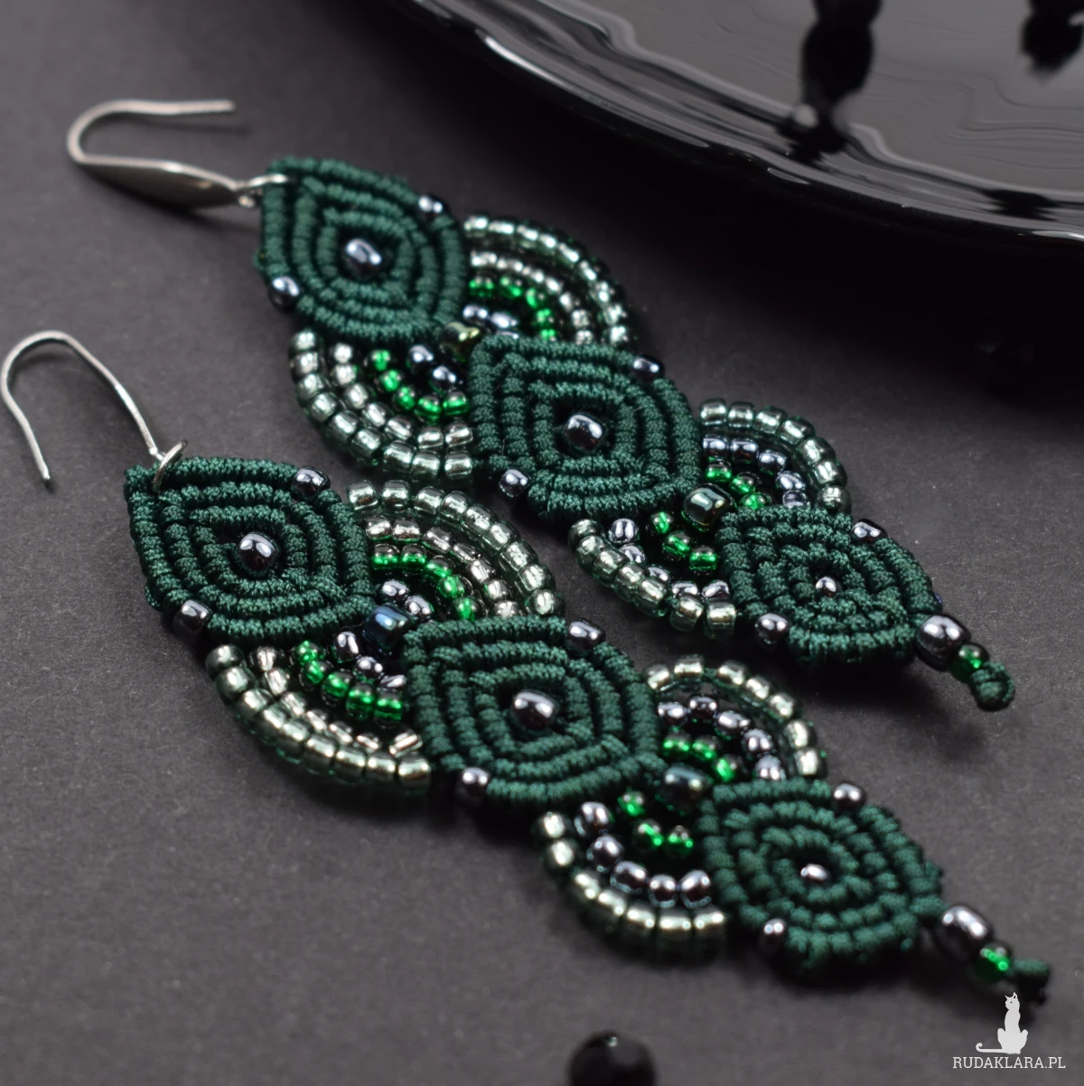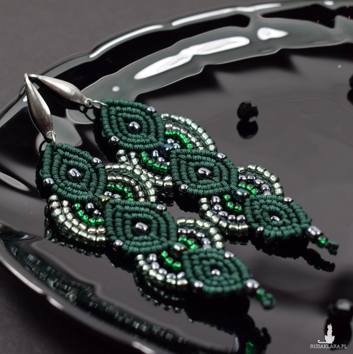 koralikami w tonacjach srebra, szmaragdu i zieleni, które pięknie