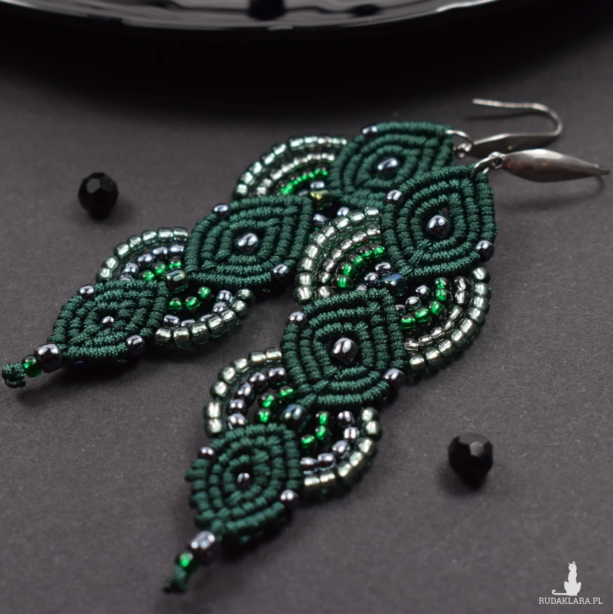 Ręcznie wykonane kolczyki stworzone techniką makramy z profesjonalnego