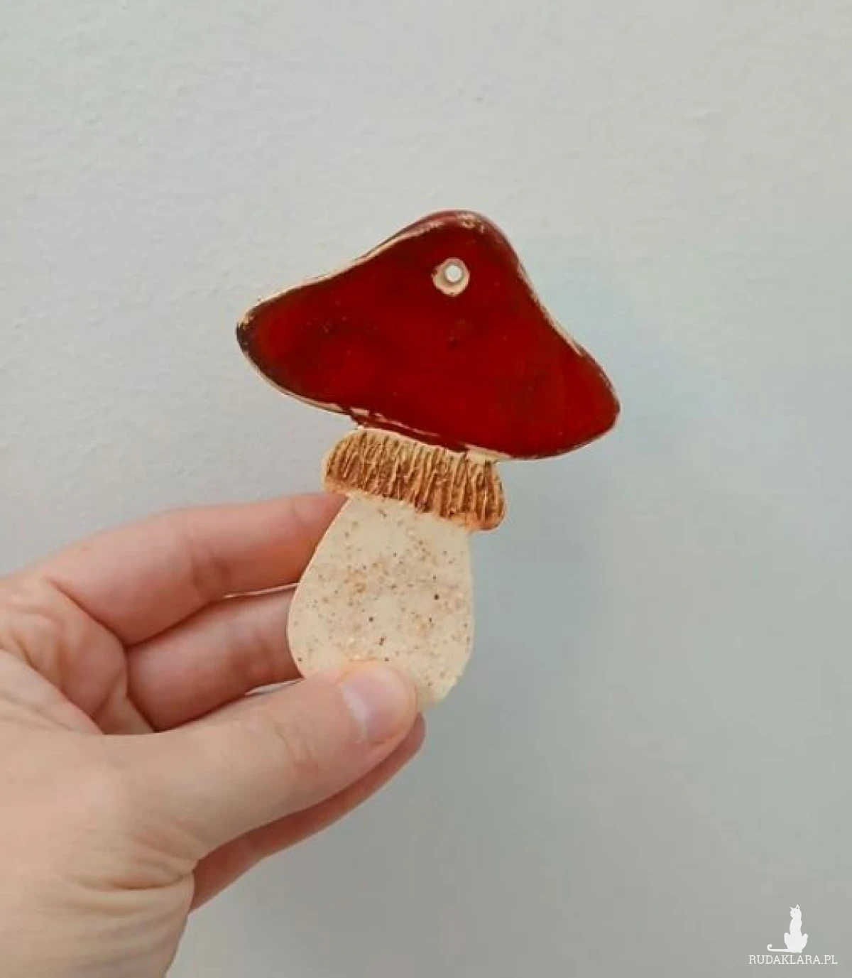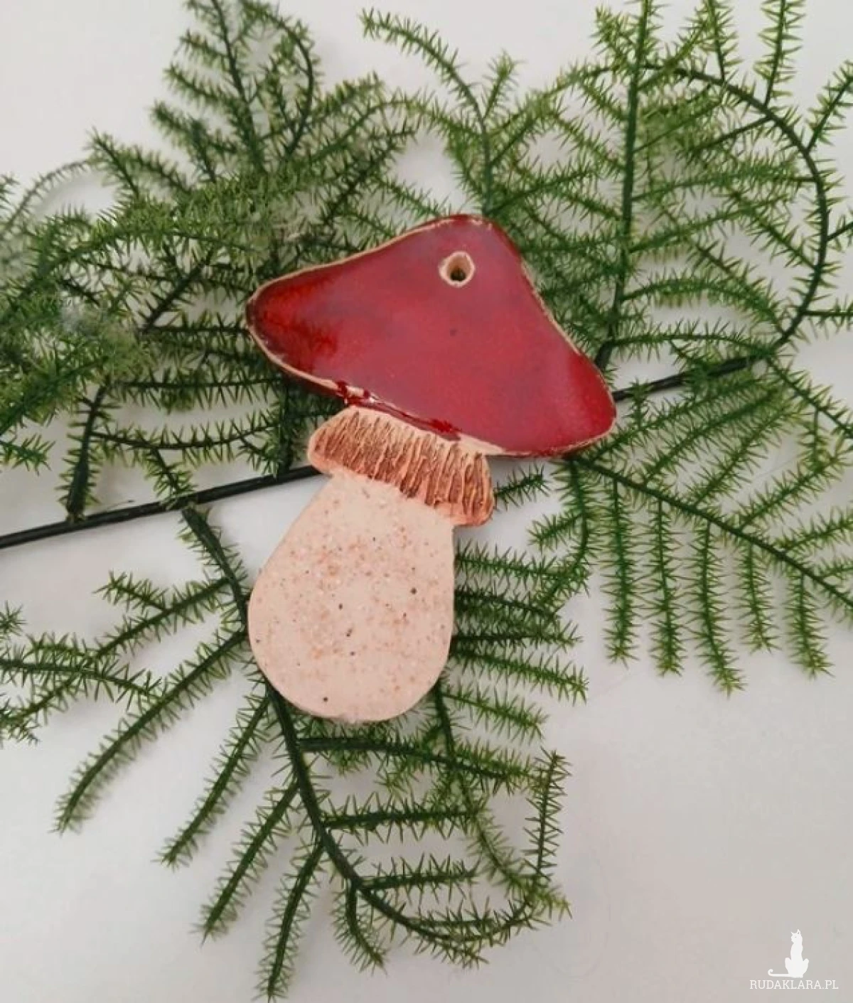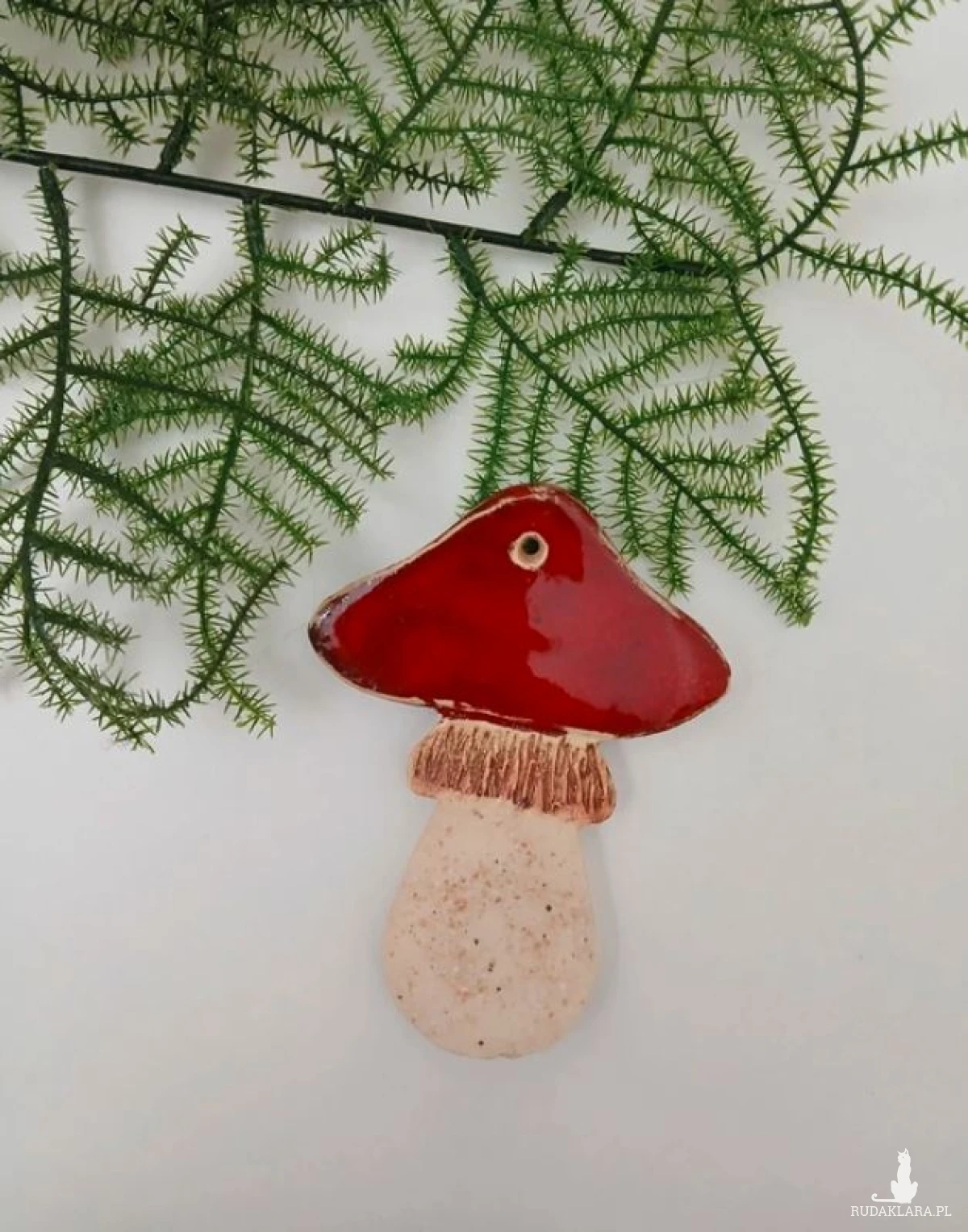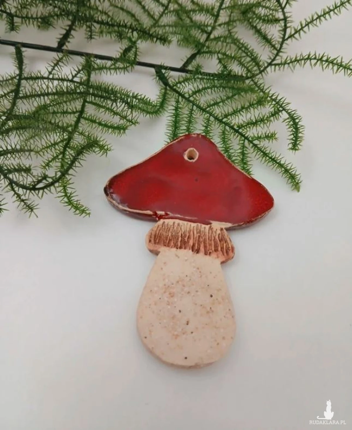 Muchomor z gliny ceramiczny grzyb grzybek muchomorek, zawieszka w rustykalnym stylu, unikatowa bombka na choinkę.