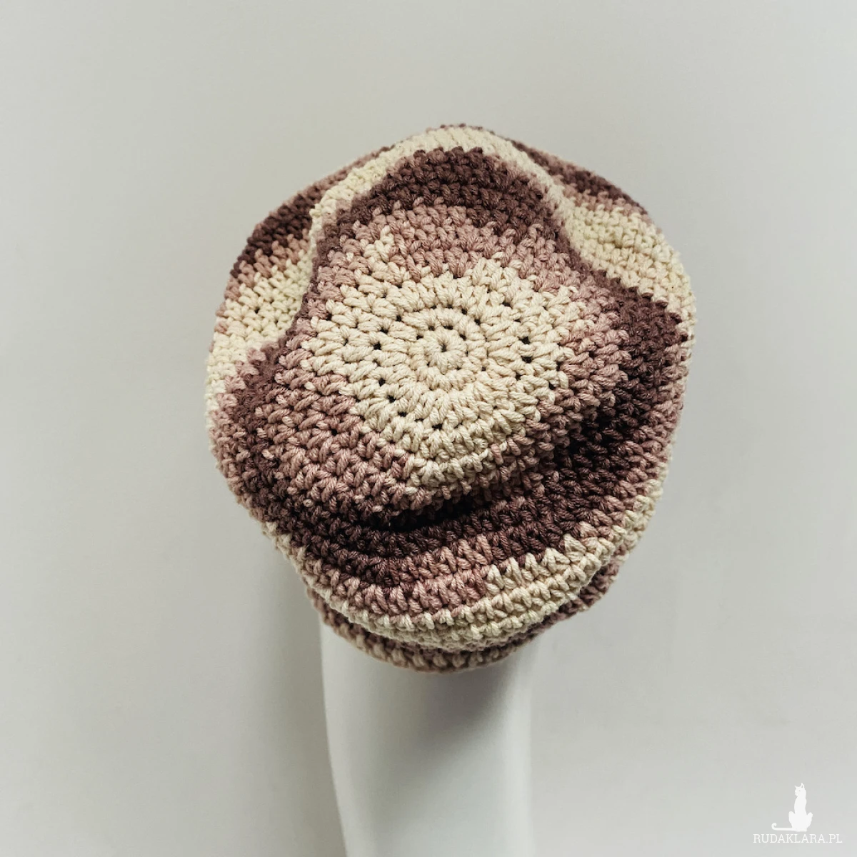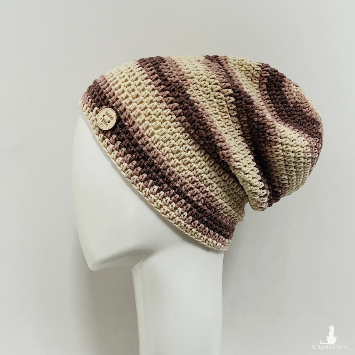 Czapkę wykonałam z wysokiej jakości włóczki bawełniano-akrylowej, która zapewnia wygodę noszenia przez cały dzień.