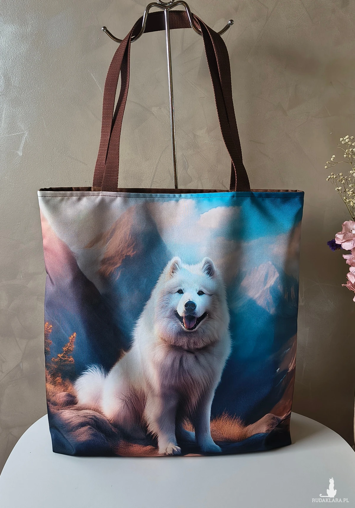 To całkiem spora torba a do tego wytrzymała Wykonana z materiału wodoodpornego, więc nie straszny jej deszcz czy zabrudzenia. Wewnątrz znajduje się wodoodporna podszewka z kieszonką na zamek. Na przedniej ścianie panel z psem. Tył torby brązowy.
