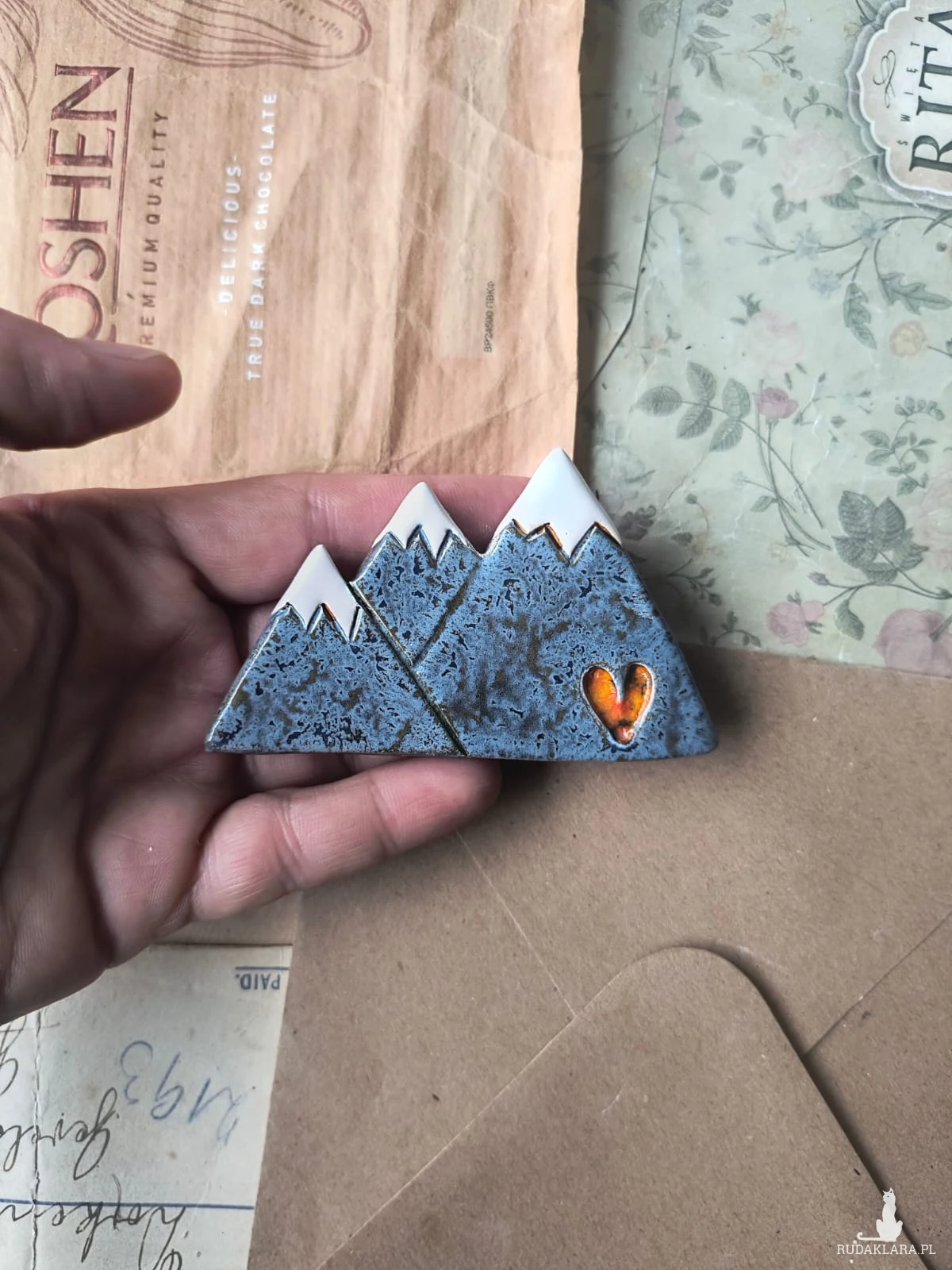 Magnes w postaci szczytów dla miłośników górskich wędrówek. Wymiary ok 5, 5 cm x 7,5 cm. Polecam serdecznie. Możliwość zamiany zapięcia na przypinkę.