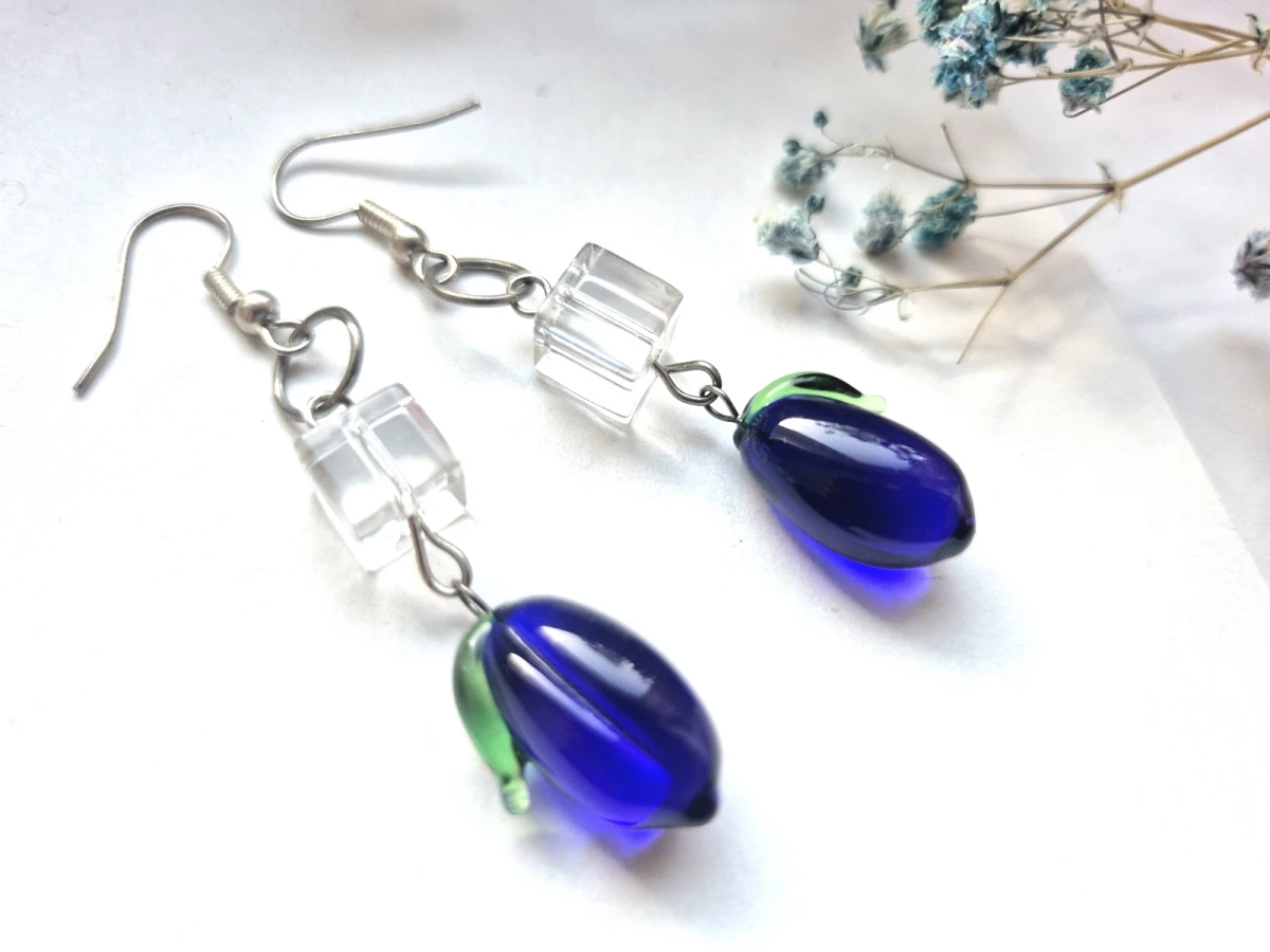 Kolczyki śliwki węgierki boks M1 rękodzieło