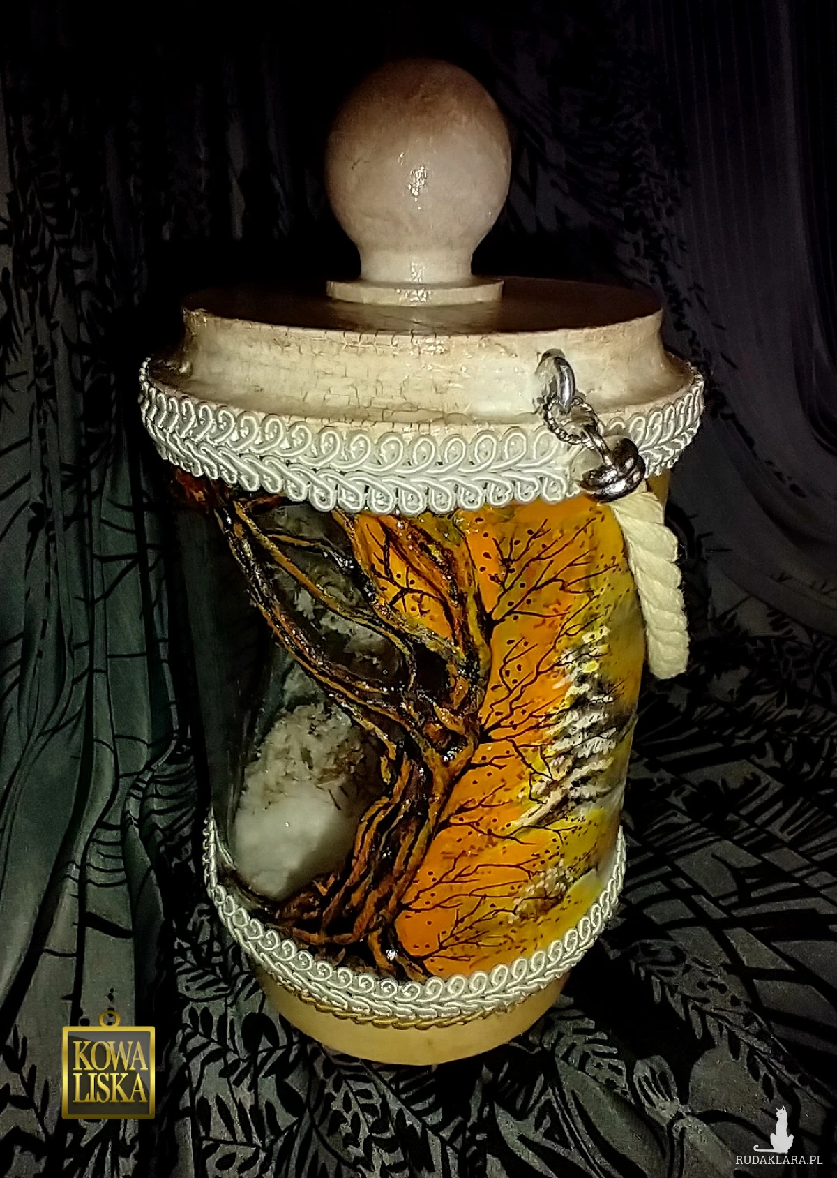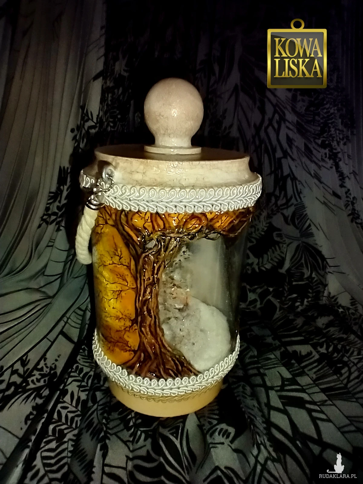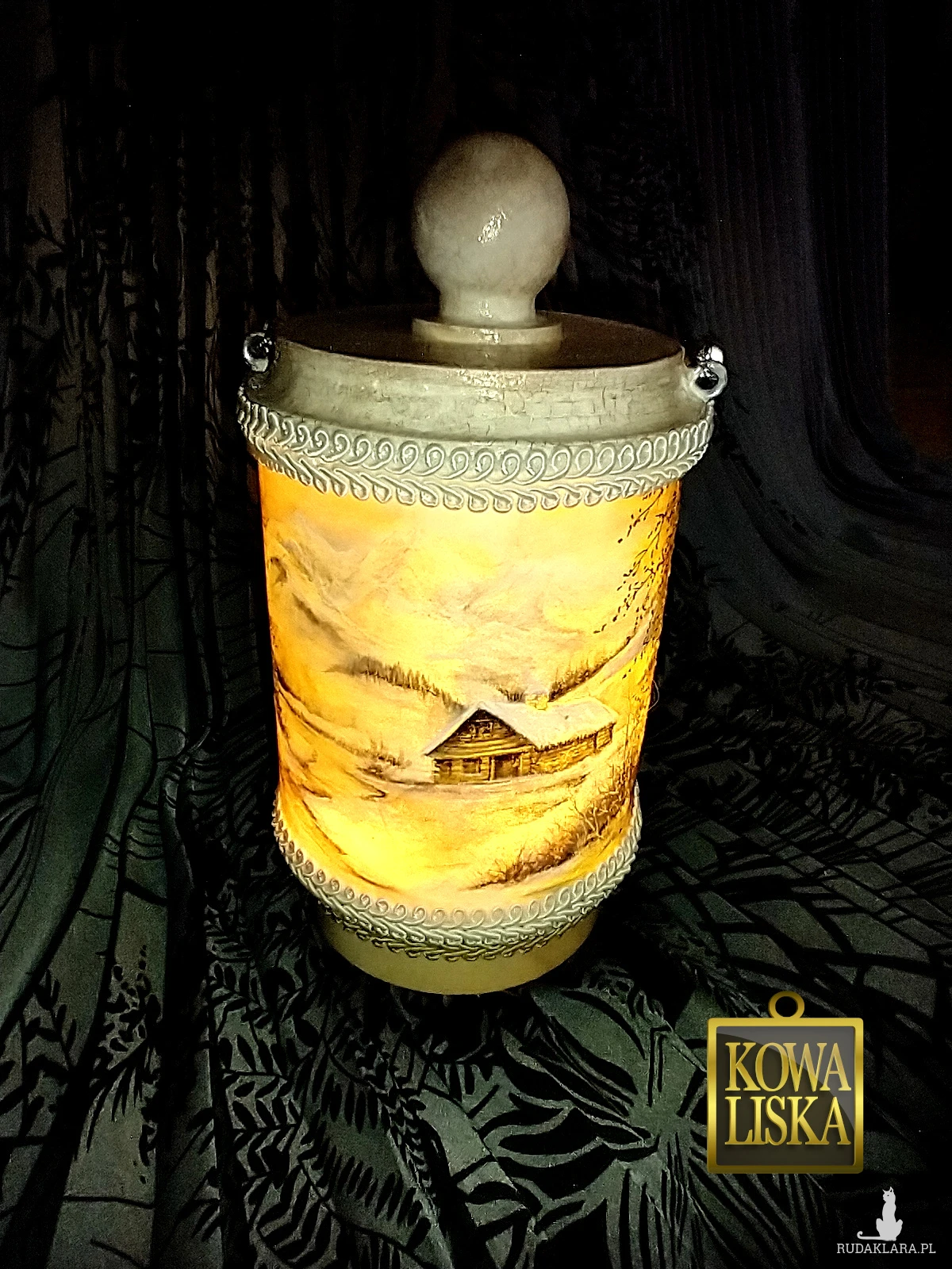 Całość pod szkłem - pięknie ożywa po zapaleniu lampki, znajdującej się w podstawie.