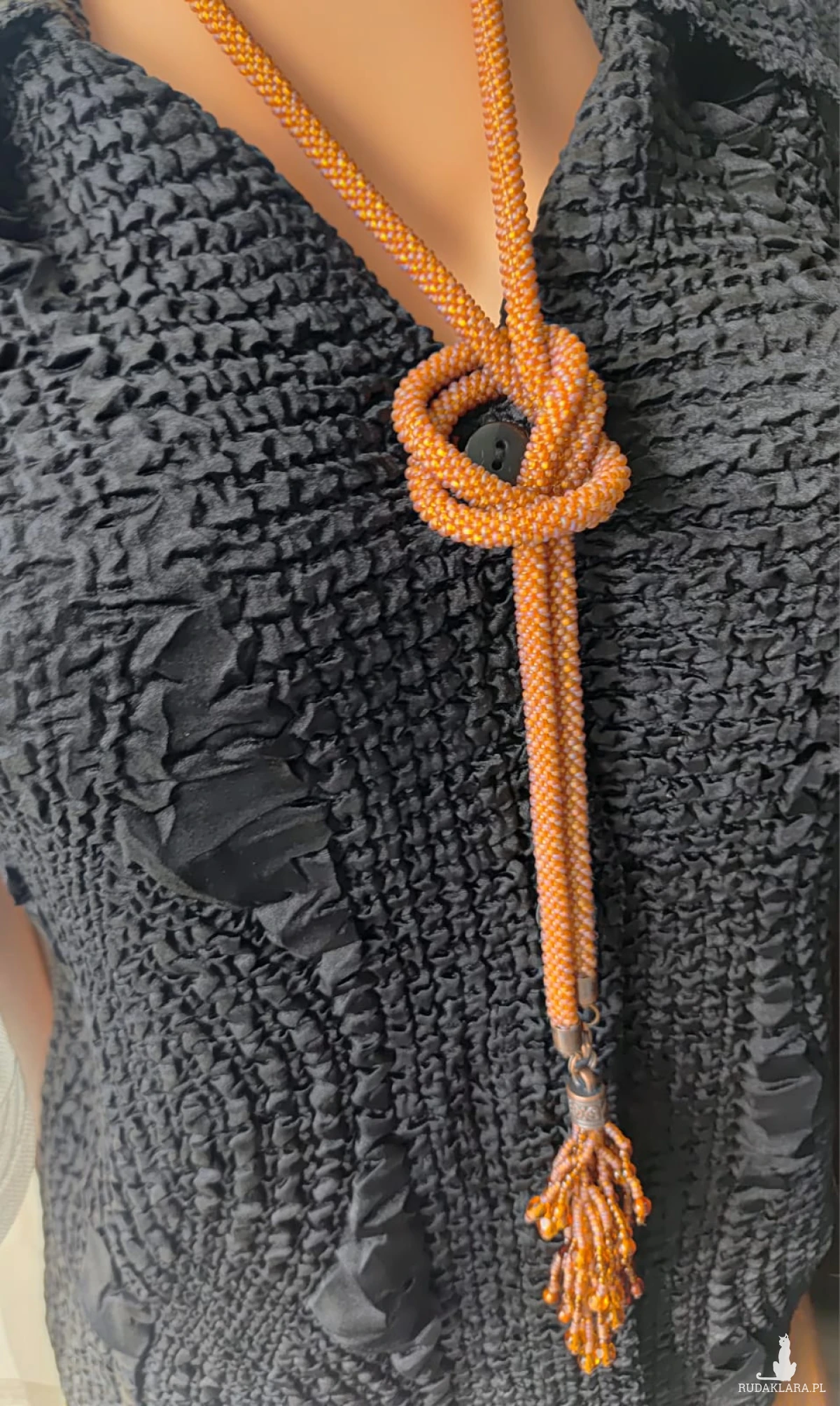 Naszyjnik bardzo długi 128 cm sznura koralikowego i zawieszka