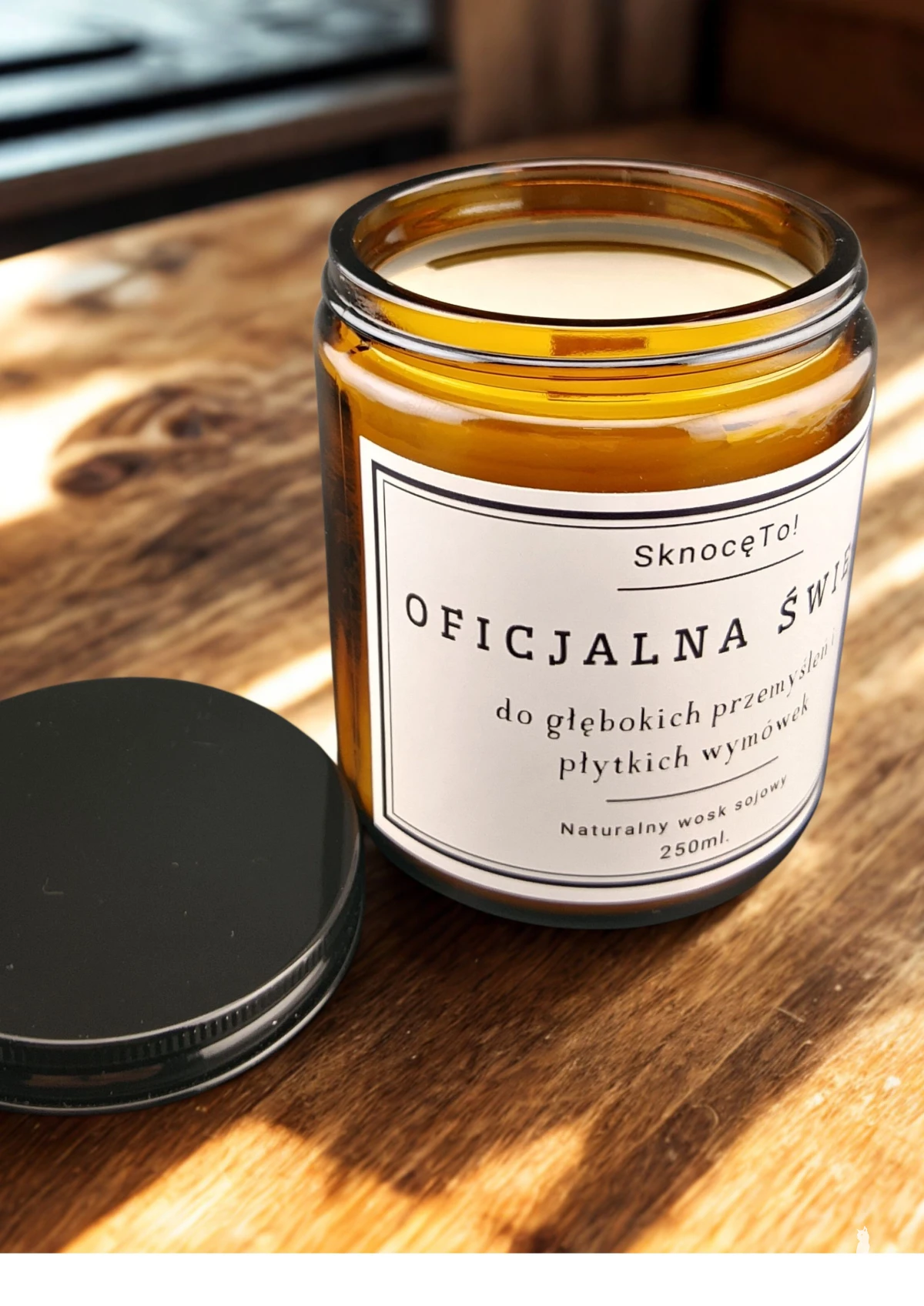 Poznaj naszą nową serię świec z humorem — Oficjalna Świeca, stworzoną z myślą o tych, którzy lubią się pośmiać (nawet z siebie 😏).