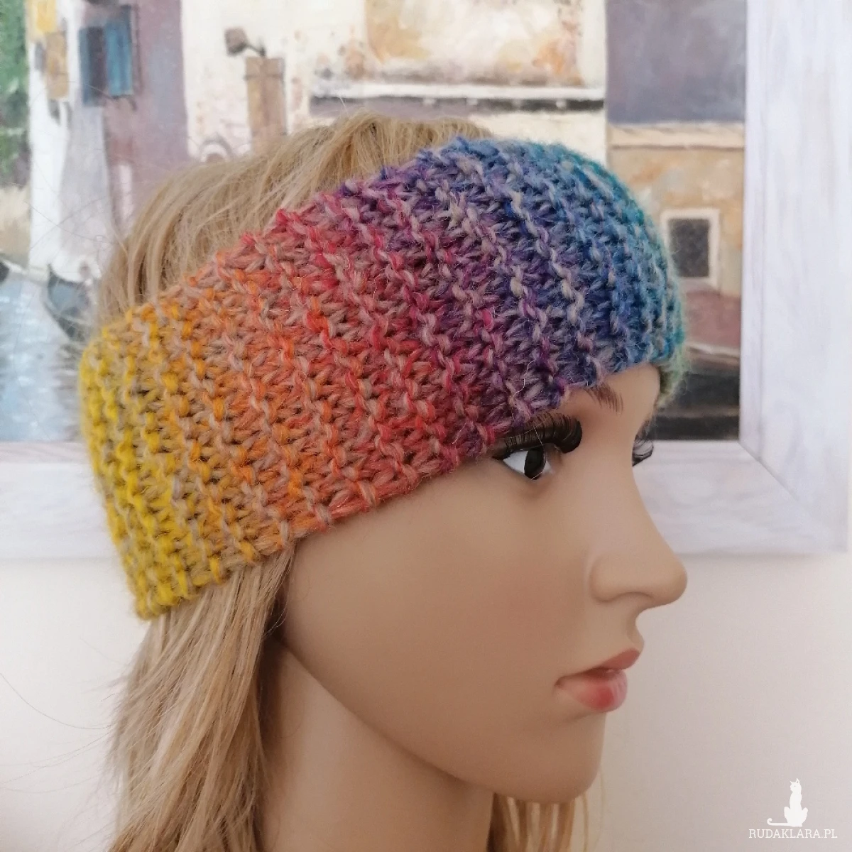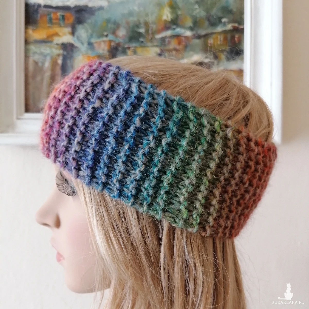 Miła, ciepła i bardzo wygodna opaska wykonana ręcznie na drutach z uroczej hiszpańskiej włóczki o składzie 53% wełna, 47% akryl. Polecam dla obwodów głowy 55-59. Szerokość 9 cm.