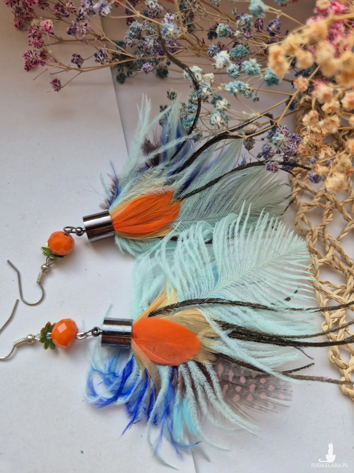Kolczyki pióra boho eleganckie lekkie boks rękodzieło