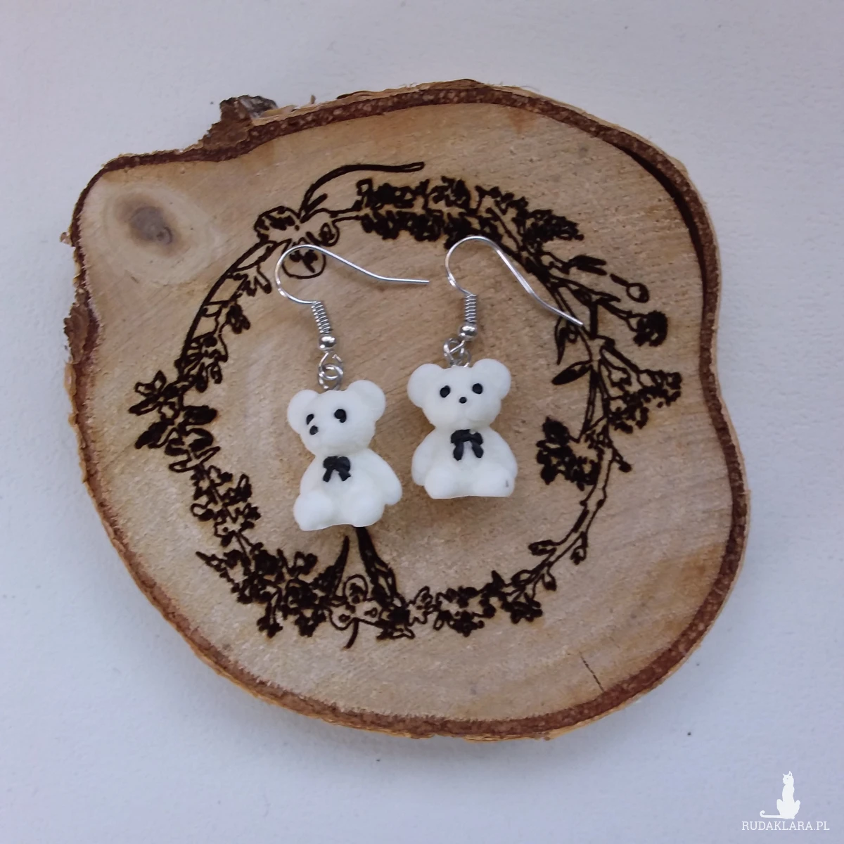 Kolczyki z motywem misiów, bigle ze stali chirurgicznej. Dł. z biglem ok. 4 cm