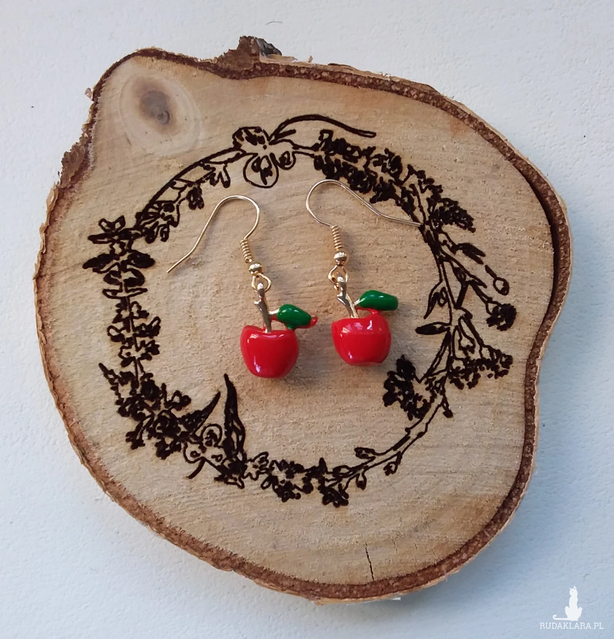 Kolczyki z motywem jabłek, bigle ze stali chirurgicznej. Dł. z biglem ok. 3,5cm