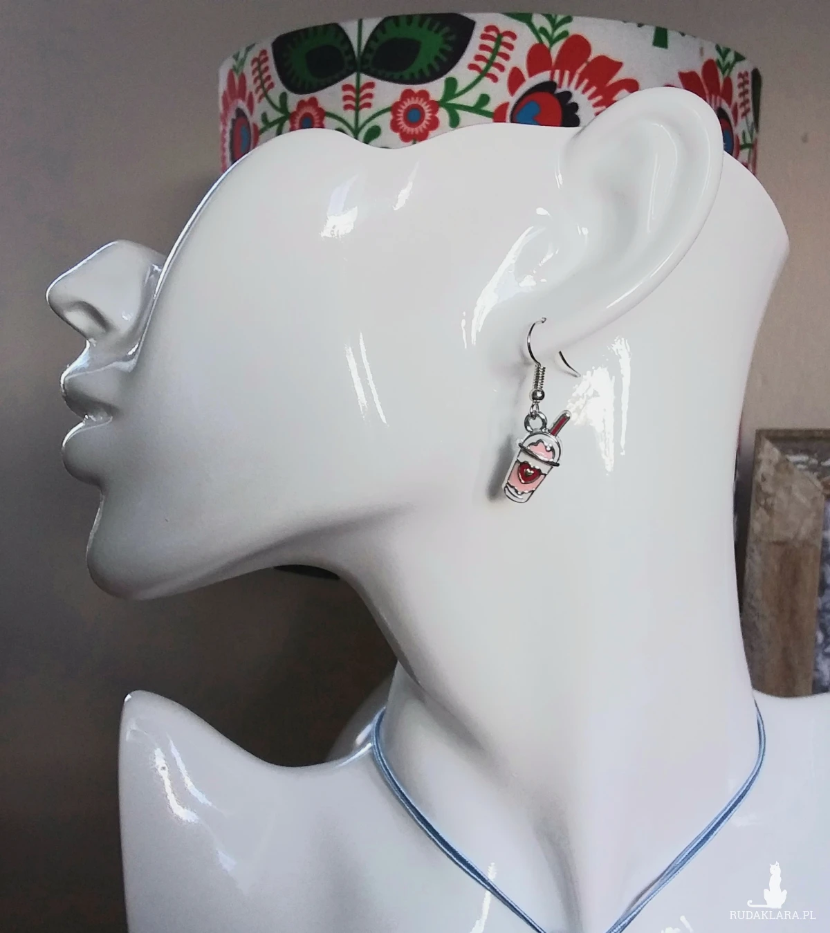 Kolczyki z motywem napojów, stal chirurgiczna. Dł. z biglem ok. 3 cm