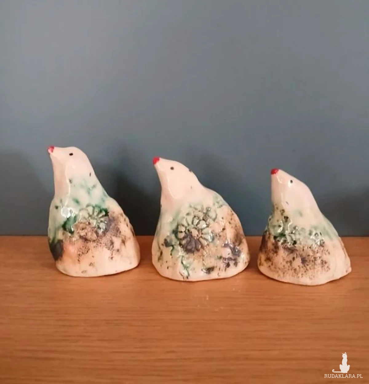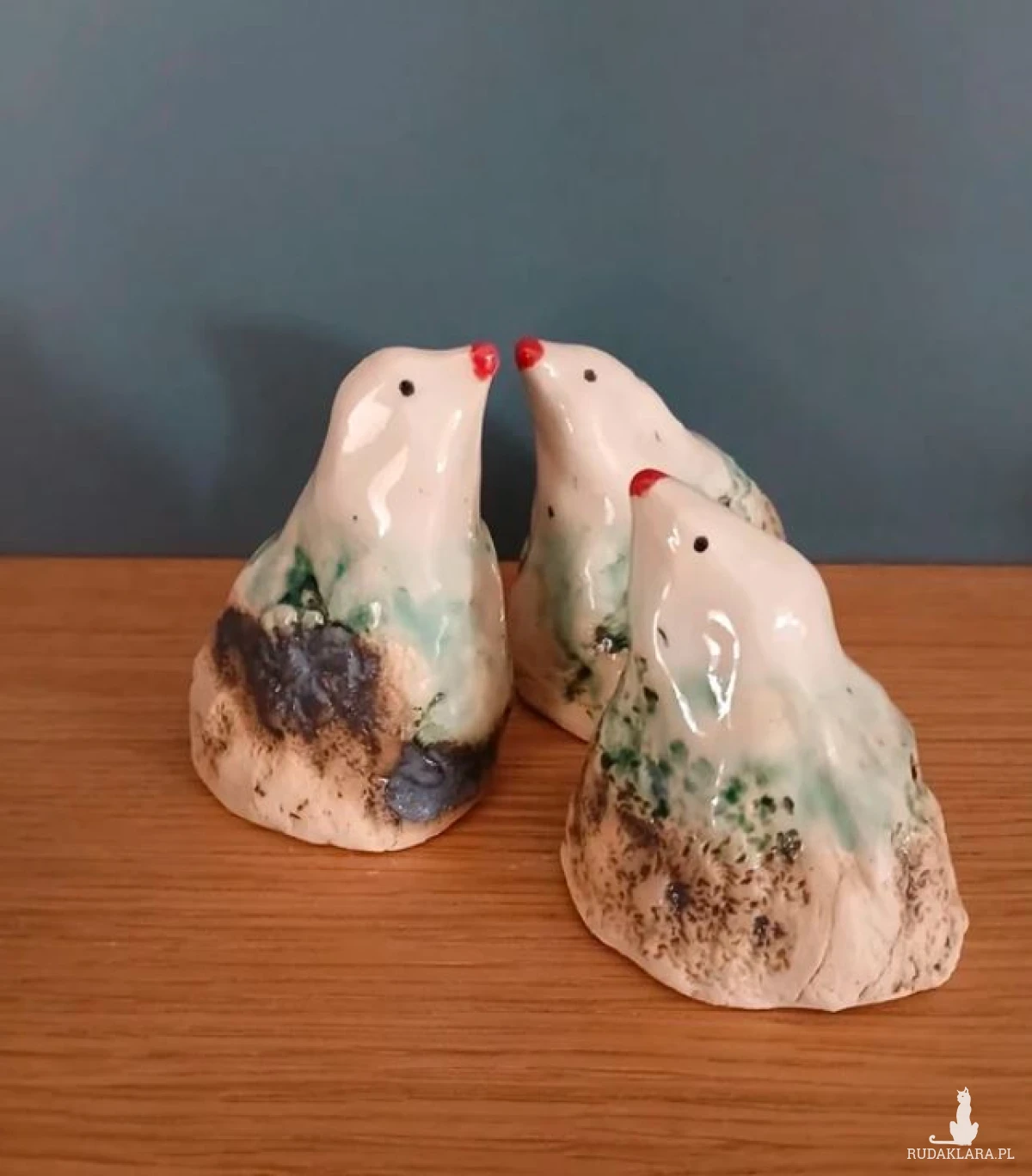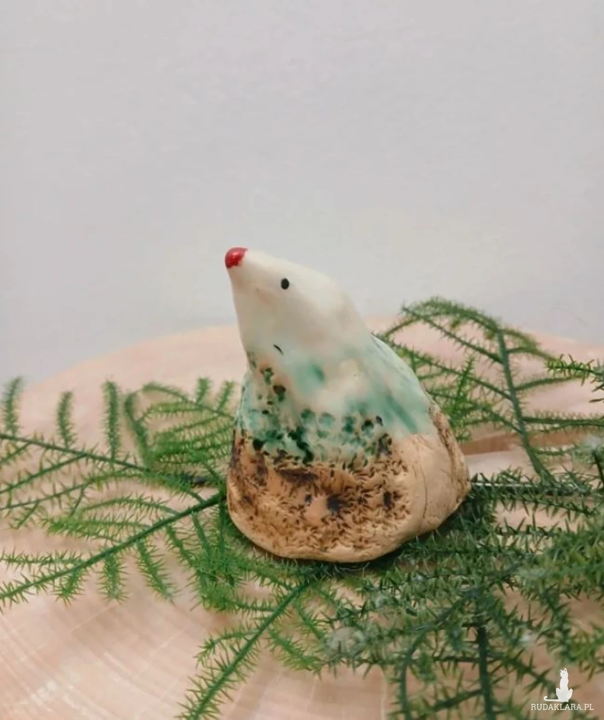 Urocza figurka ceramiczna kuropatwa świąteczna dekoracja stołu stroik świąteczny. Gliniany ptaszek rustykalny retro boho cottagecore farmhouse - galeria sztuki rękodzieło z Beskidu Podstawa 4.5x6cm Wysokość 7cm