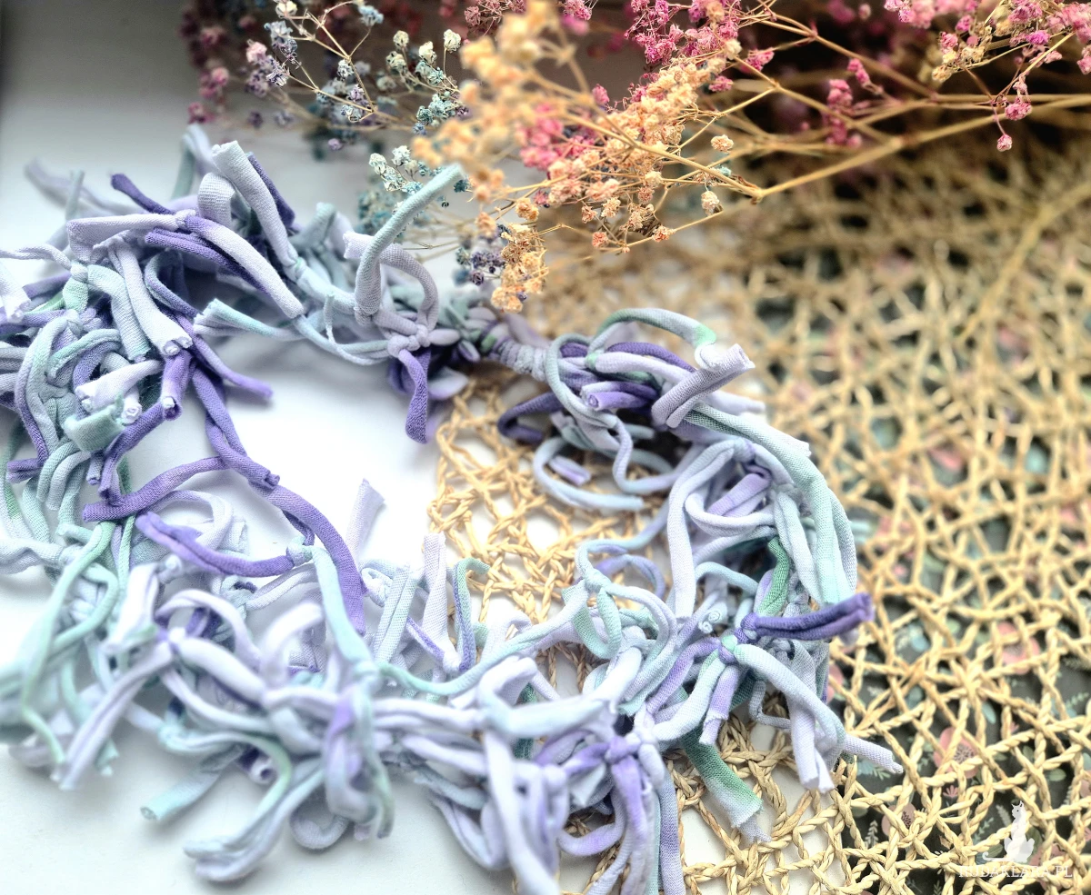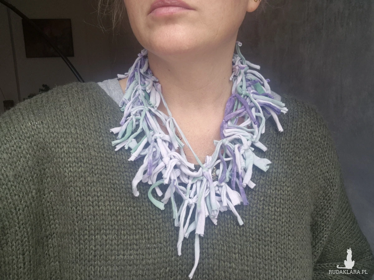 naszyjnik dzianinowy szmatkowy farbowany zakładany przez glowe, box x1