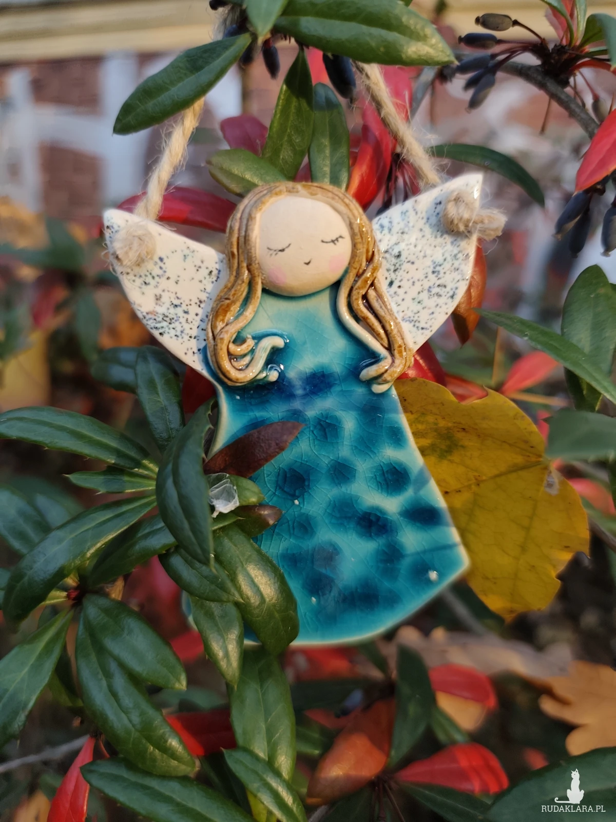Aniołek ceramiczny - rękodzieło, wykonany z gliny szamotowej, szkliwiony i dwukrotnie wypalany w piecu ceramicznym. Wielkość 8 cm. Polecam na dodatek do prezentu. Będzie się Wami opiekował.