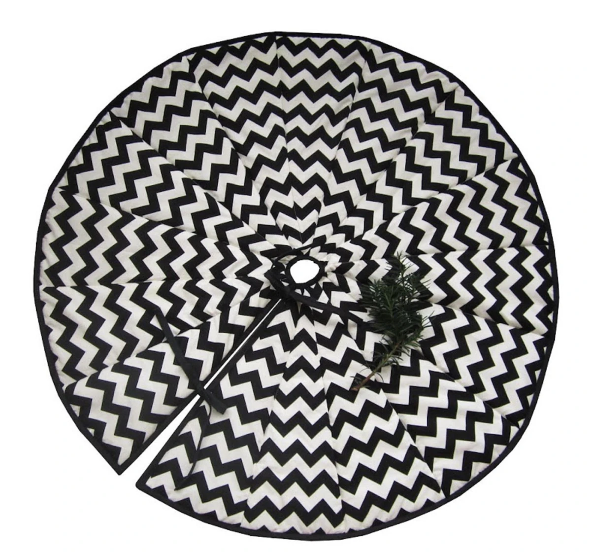 Dywanik stylu minimalistycznym, wykonany z tkanin bawełnianych , wypełniony cienką ociepliną i podszewką przez co jest stabilny, nie ściąga się. Dywanik posiada rozcięcie pozwalając na ukrycie podstawy choinki,. wykończone troczkami do wiązania. Można ją również użyć jako zwykły dywanik pod choinkę, na którym się ją stawia . Ma średnicę 95 cm, a więc pomieści dużo prezentów :))