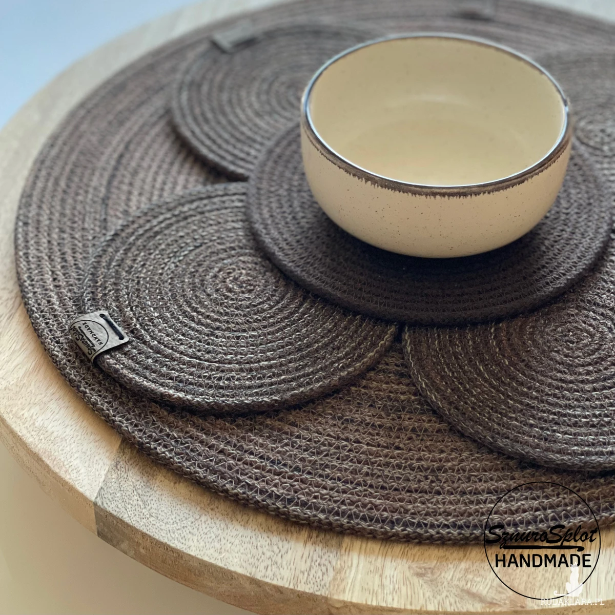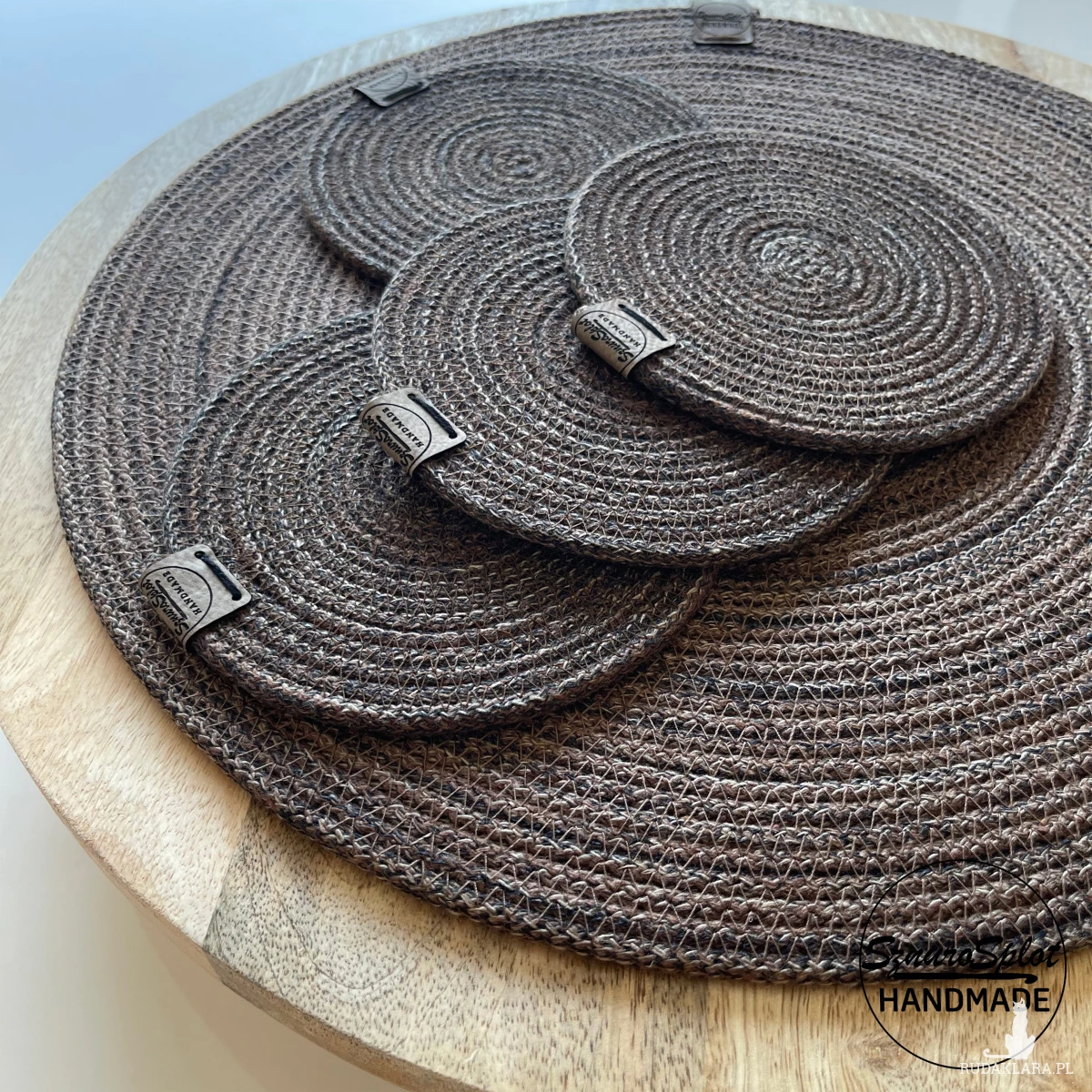 Podkładki ze sznurka uszyte w kolorach brązowego melanżu (nie zamieszczony we wzorniku, ale dostępny)