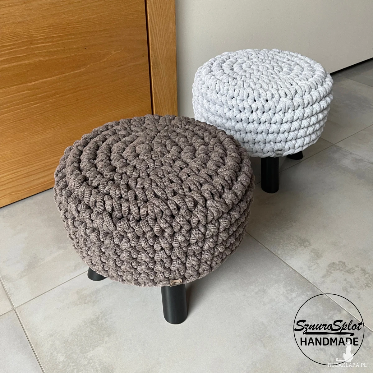 Stołek w stylu skandynawskim z pokryciem z grubego sznurka bawełnianego.