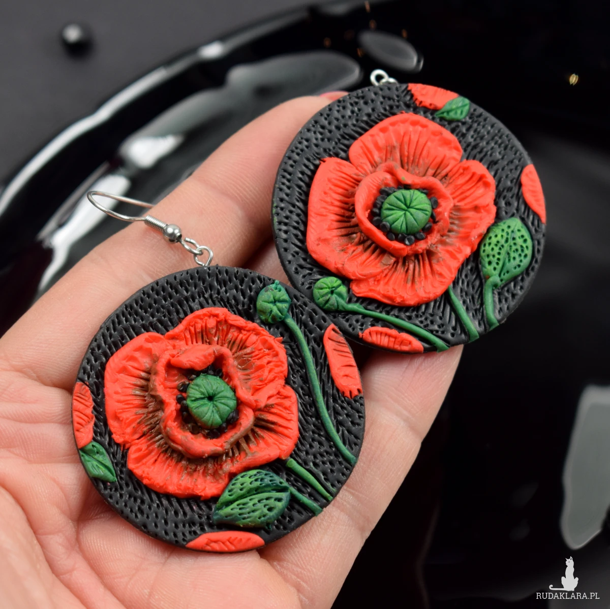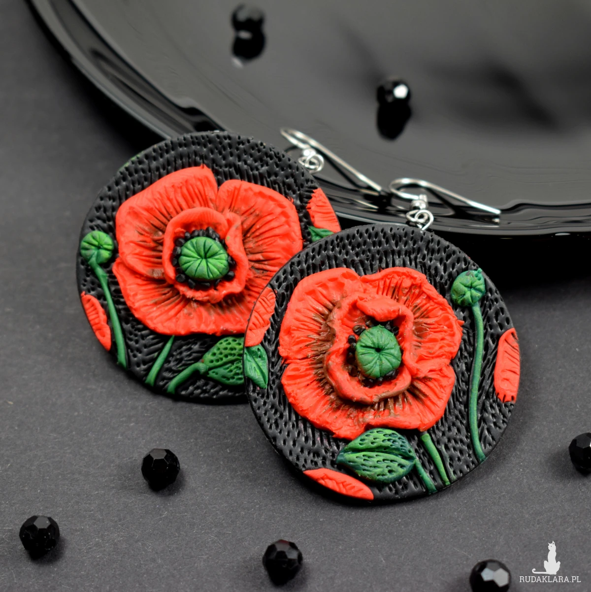 połączenie czerwieni i czerni z dodatkiem ziele sprawiają, że kolczyki