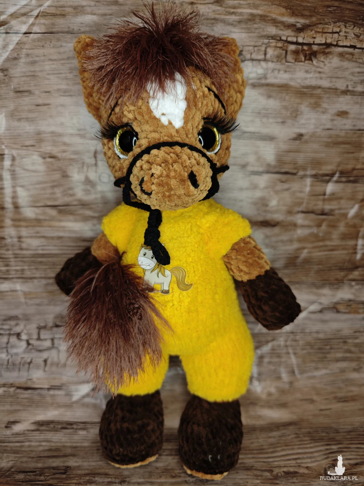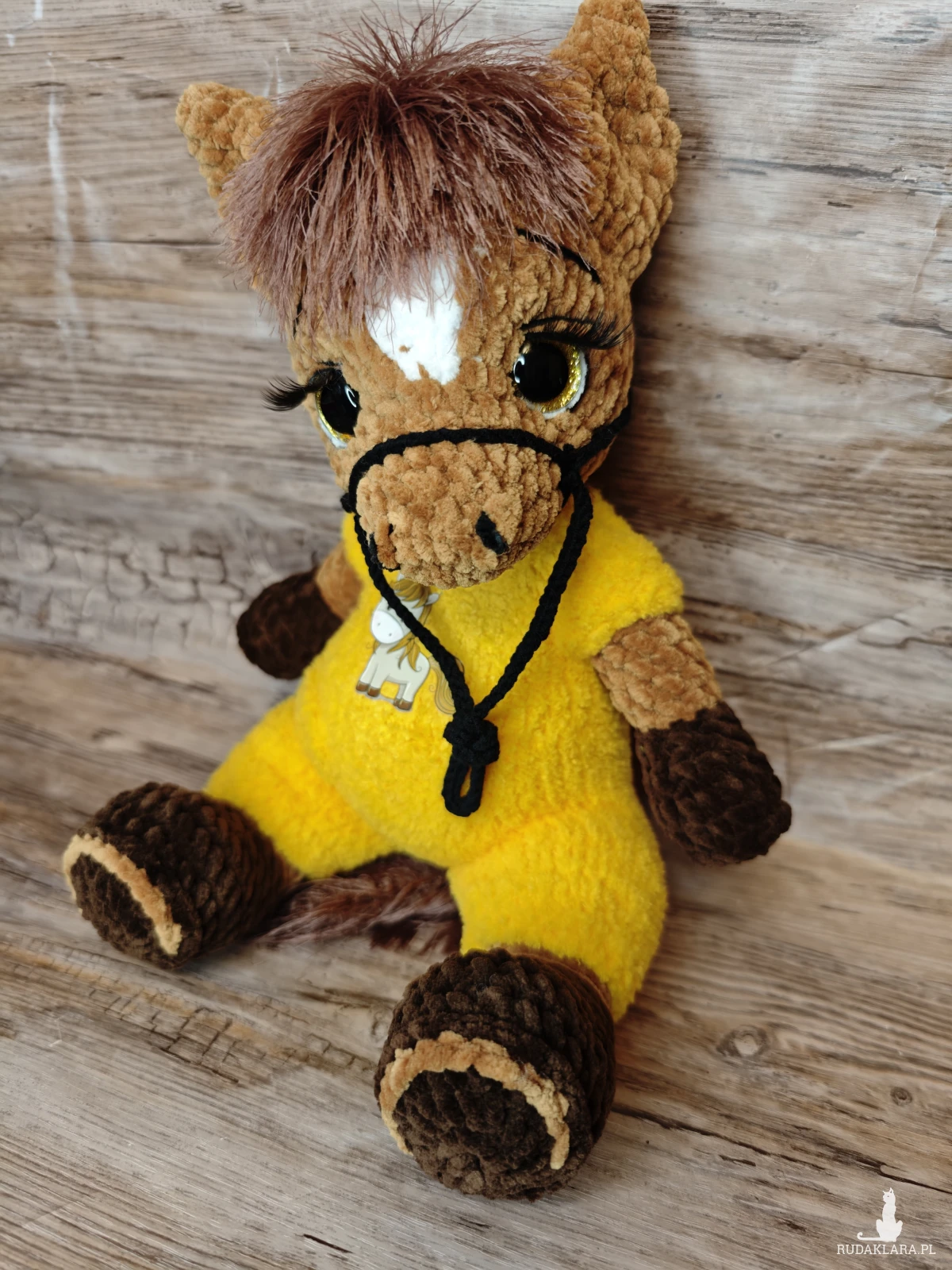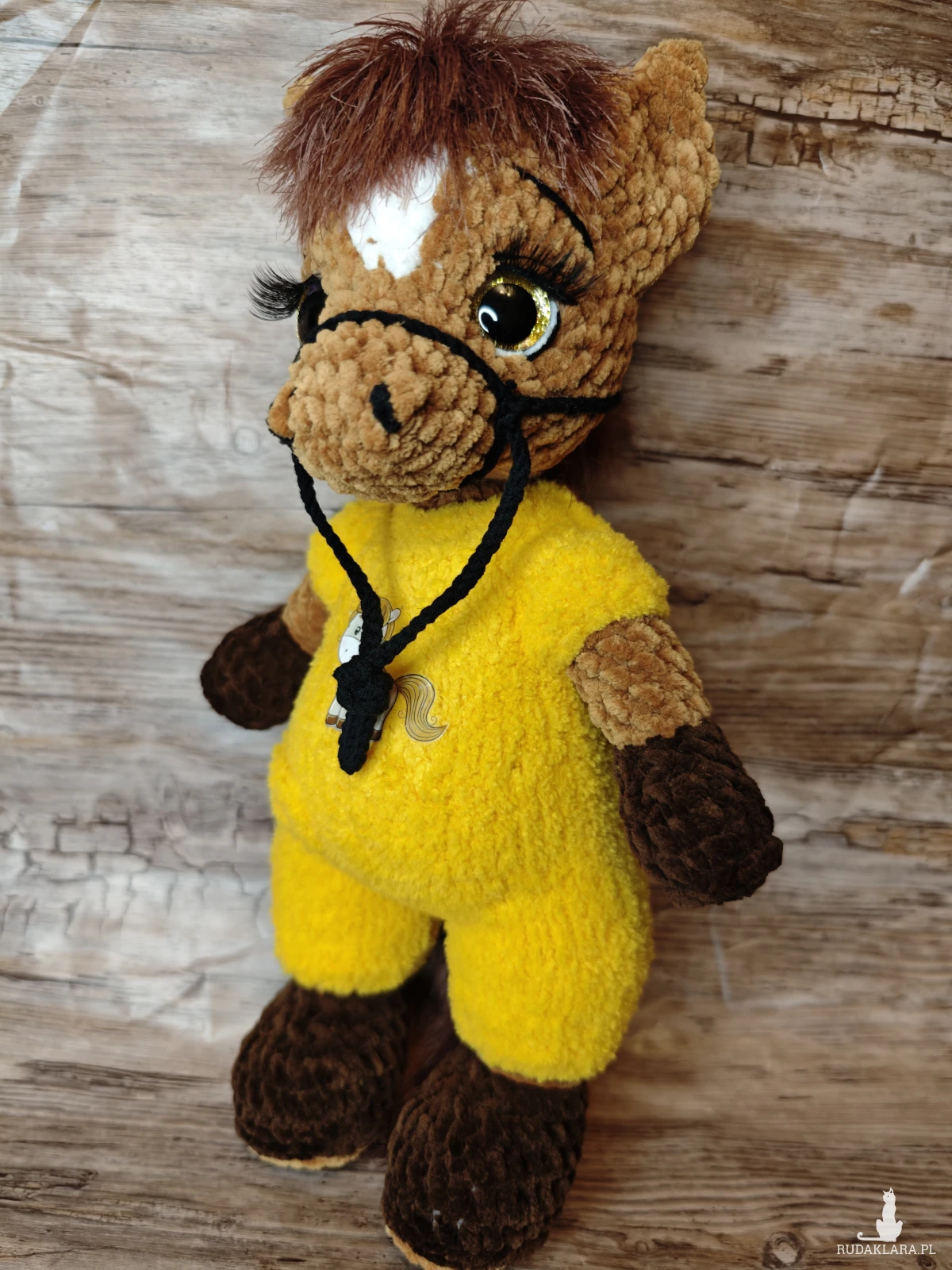 Urocza maskotka konika na szydełku, idealna do dekoracji pokoju dziecięcego. Wykonana z dbałością o detale, będzie doskonałym towarzyszem każdego malucha.