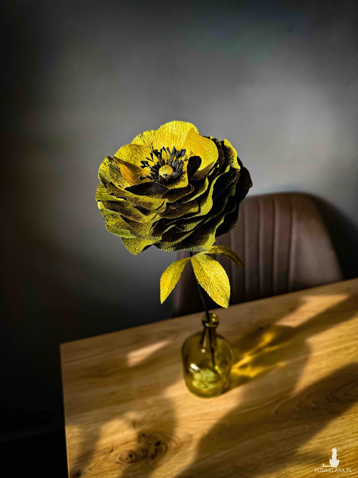 Niezwykły kwiatek z krepiny włoskiej, wykonana ręcznie.