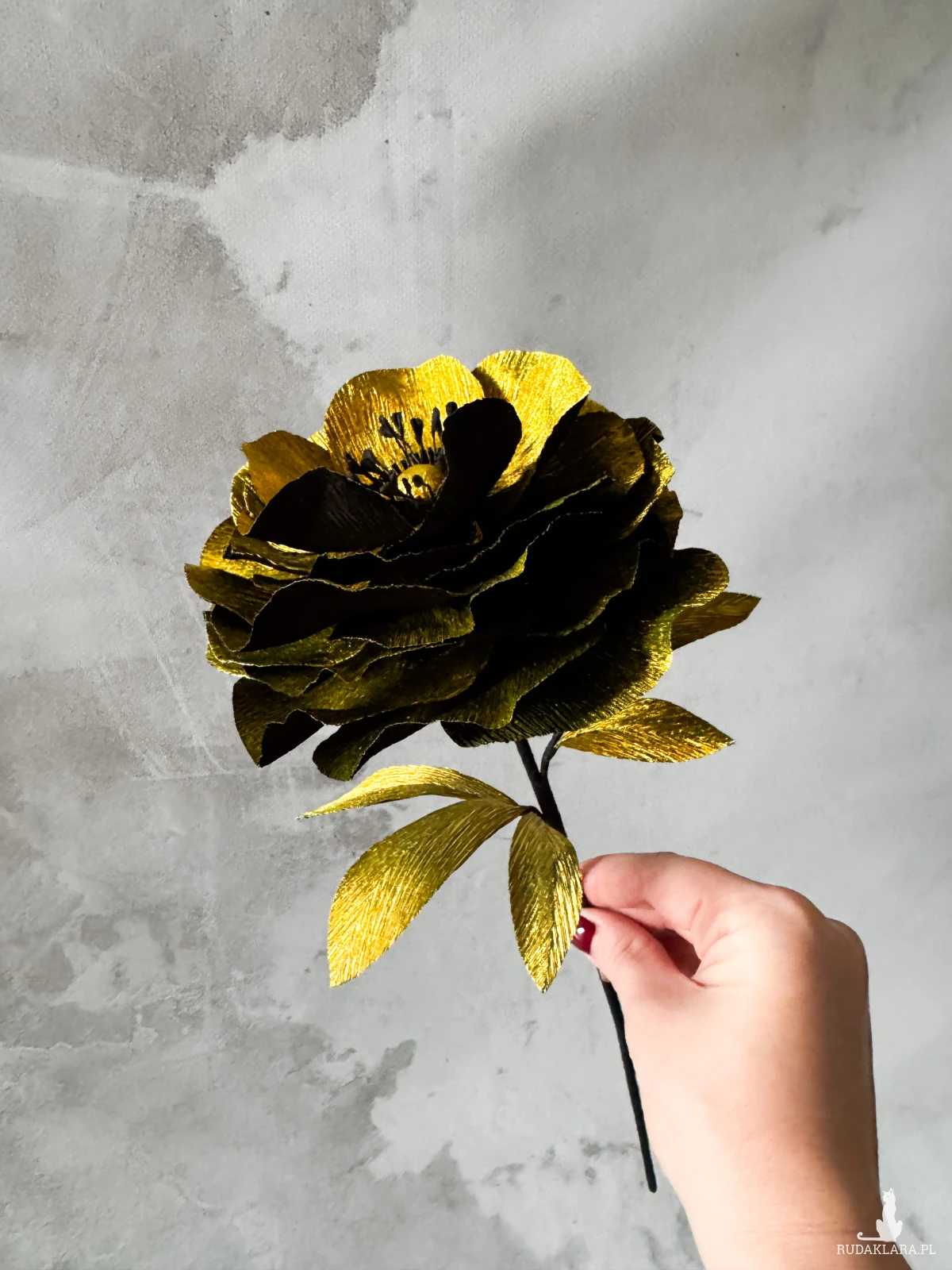 Kwiatek ma płatki w czarnym i złotym kolorze, a to nadaje mu tajemniczości, przepychu i oryginalności.