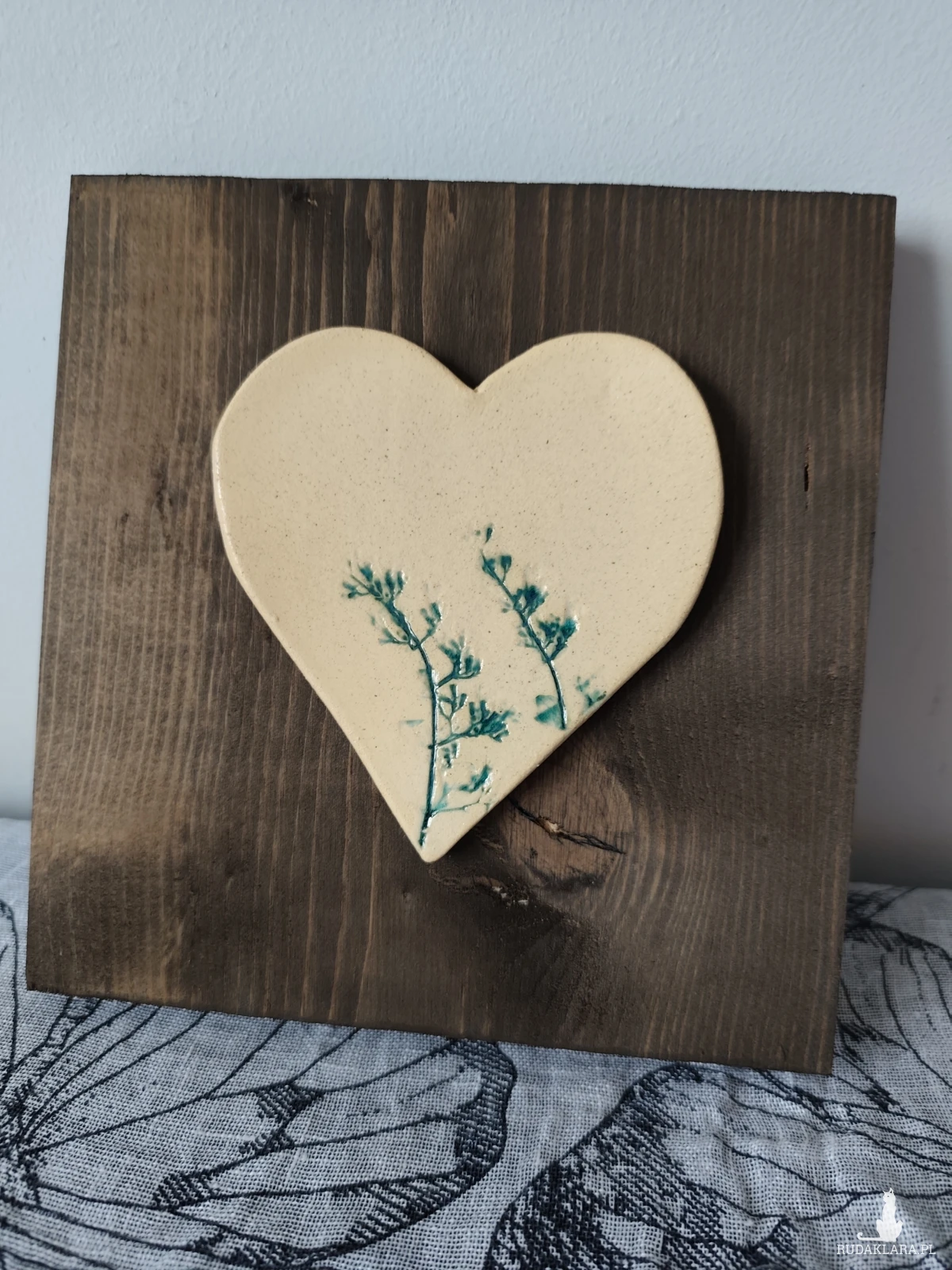 Serce ceramiczne na desce, piękna ozdoba Twoje domu. Szkliwione i dwukrotnie wypalane w piecu ceramicznym na wysoką temperaturę. Polecam. Wymiary serca 14x14cm a deski 19x20cm