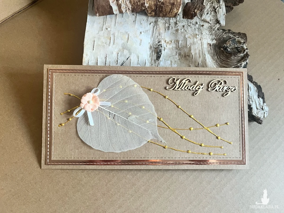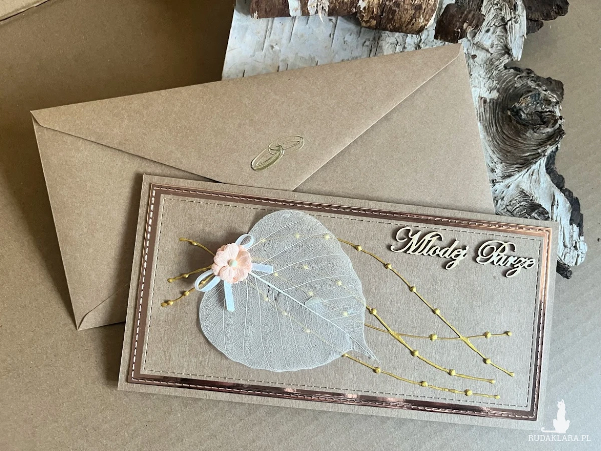 Wyjątkowa i elegancka kartka okolicznościowa , wykonana z najwyższej jakości materiałów do scrapbookingu w stylu eco. Zdobiona elementami 3D. Wykonana z dbałością o każdy detal. Kartka przestrzenna z kopertą. Wewnątrz kartki znajduje się kieszonka na małe co nieco lub kupon lotto oraz gotowe życzenia do własnoręcznego podpisu. Wielkość kartki 11x21 a koperty 12x22.