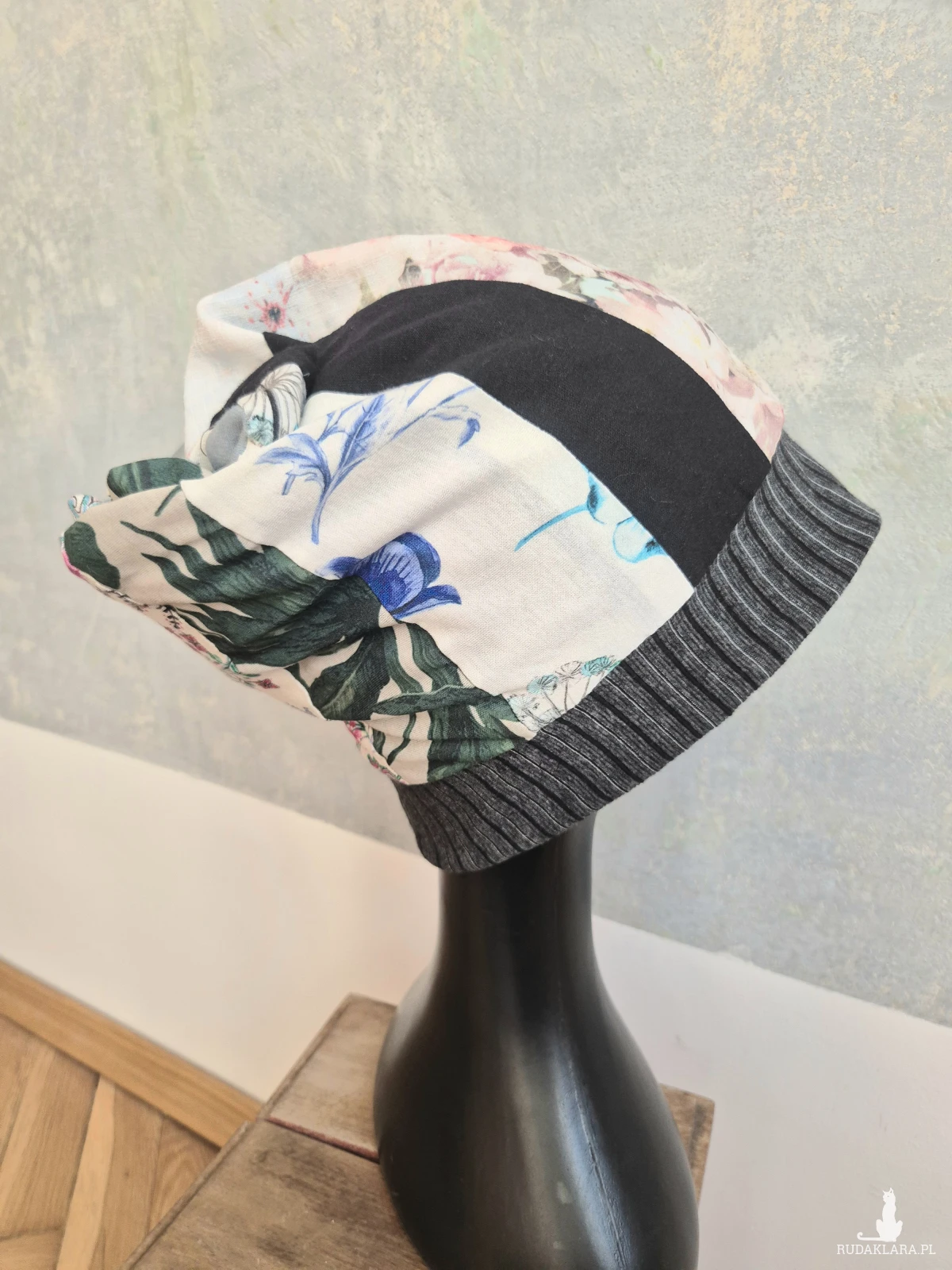 Czapka uniwersalna szyta ręcznie, na podszewce, pojedynczy jedyny egzemplarz, patchworkowa świetna na codzienne noszenie polecam rękodzieło box a1