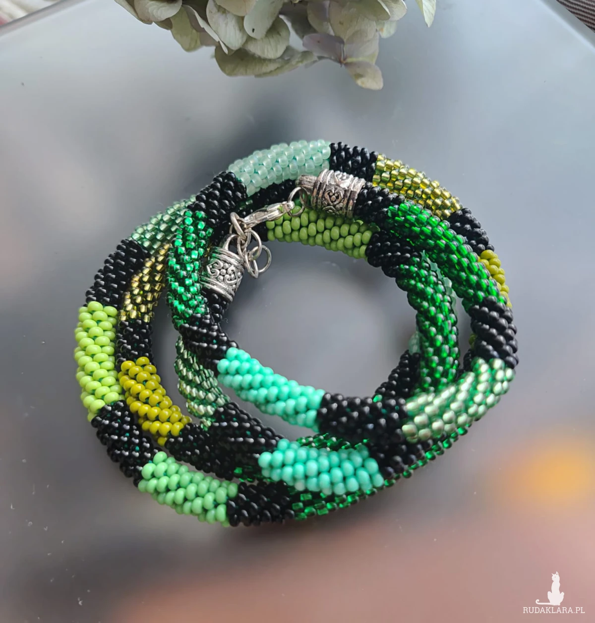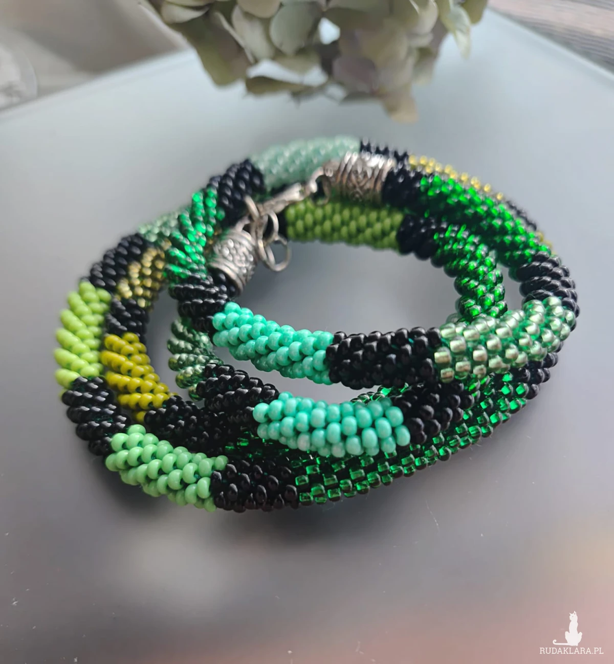 Naszyjnik Zielony Wąż Sznur Koralikowy
