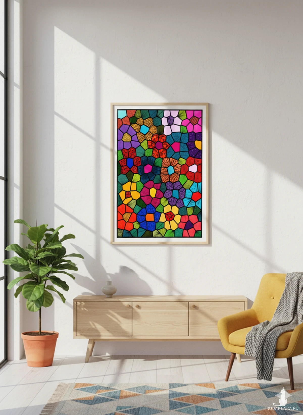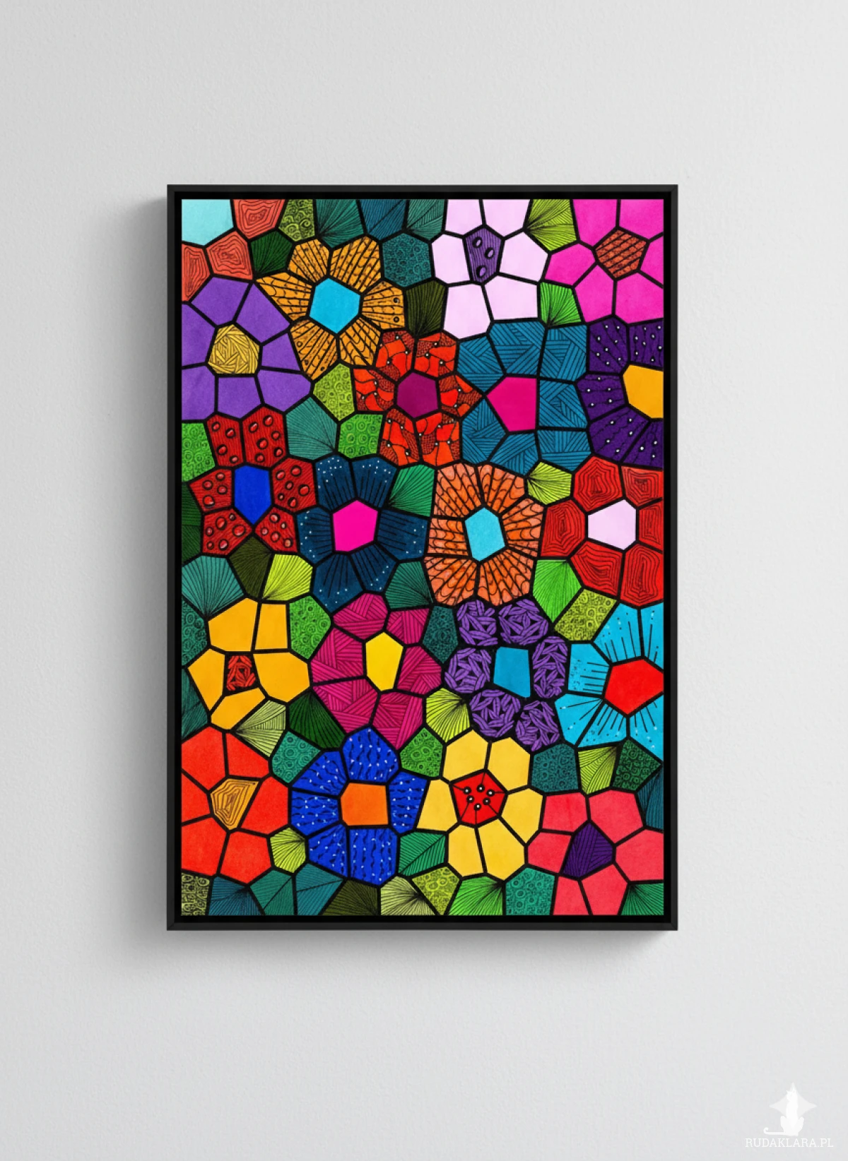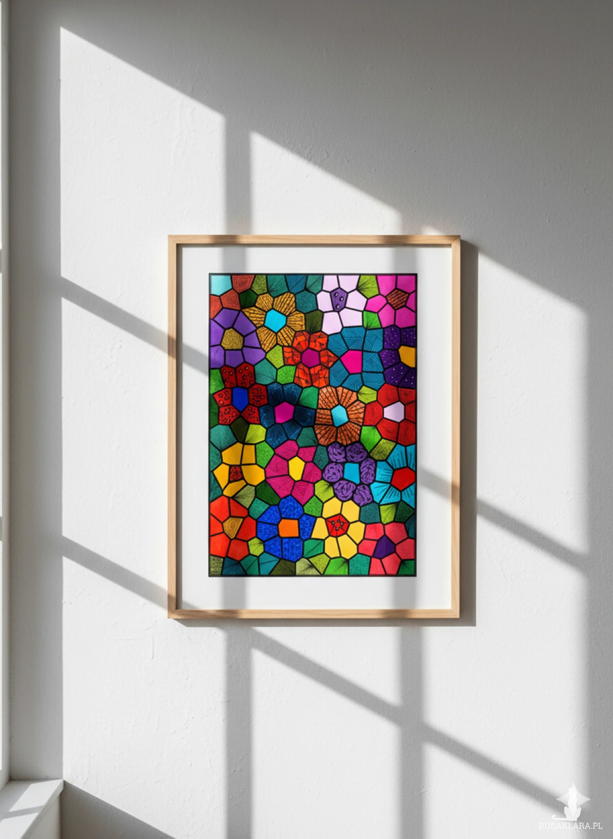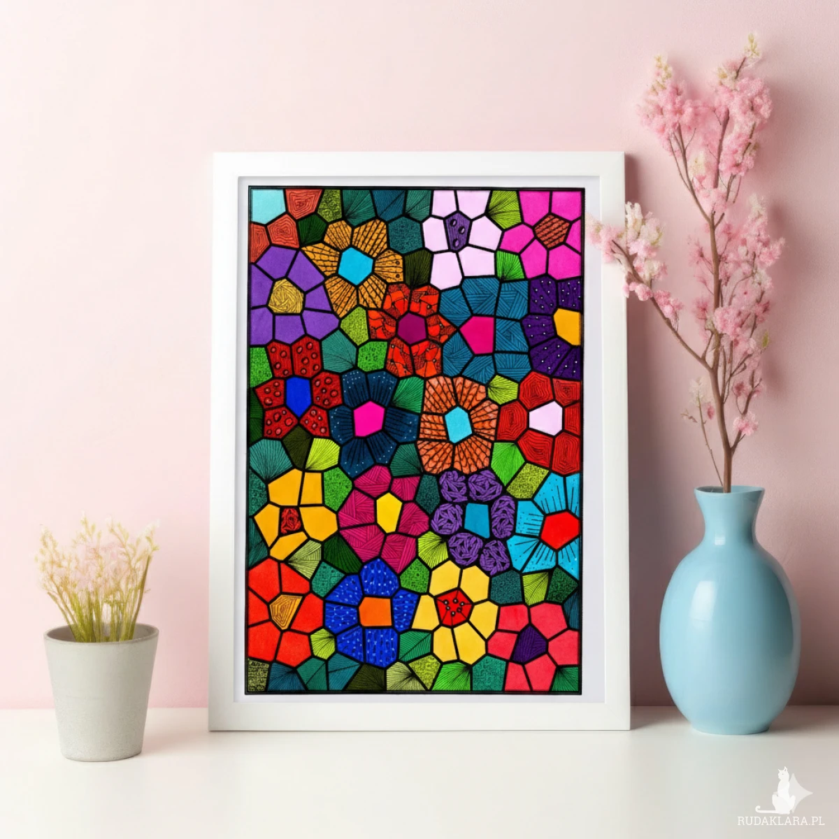 Ilustracja Abstrakcyjna, Geometria Komórkowa, Witraż/Mozaika (Stained Glass Style), Doodle Art/Zentangle Inspired, Pop Art