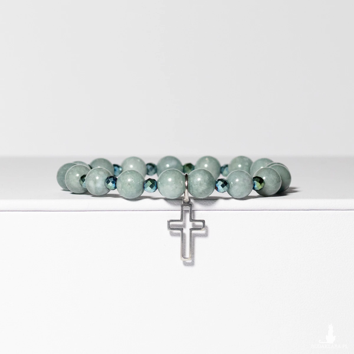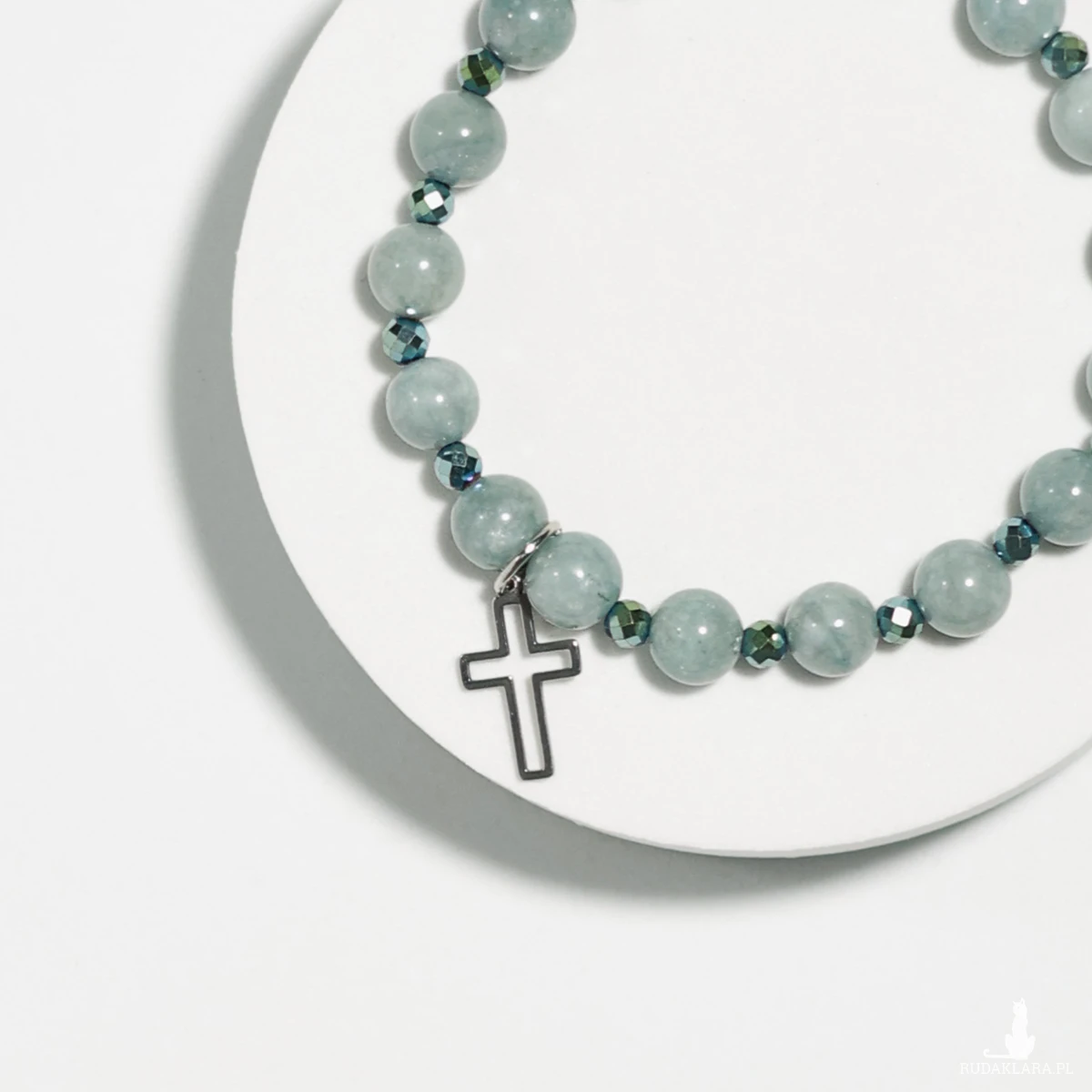 Dodatkowym akcentem jest krzyżyk ze stali szlachetnej, który podkreśla duchowy charakter biżuterii i dodaje jej nowoczesnego, ponadczasowego stylu.