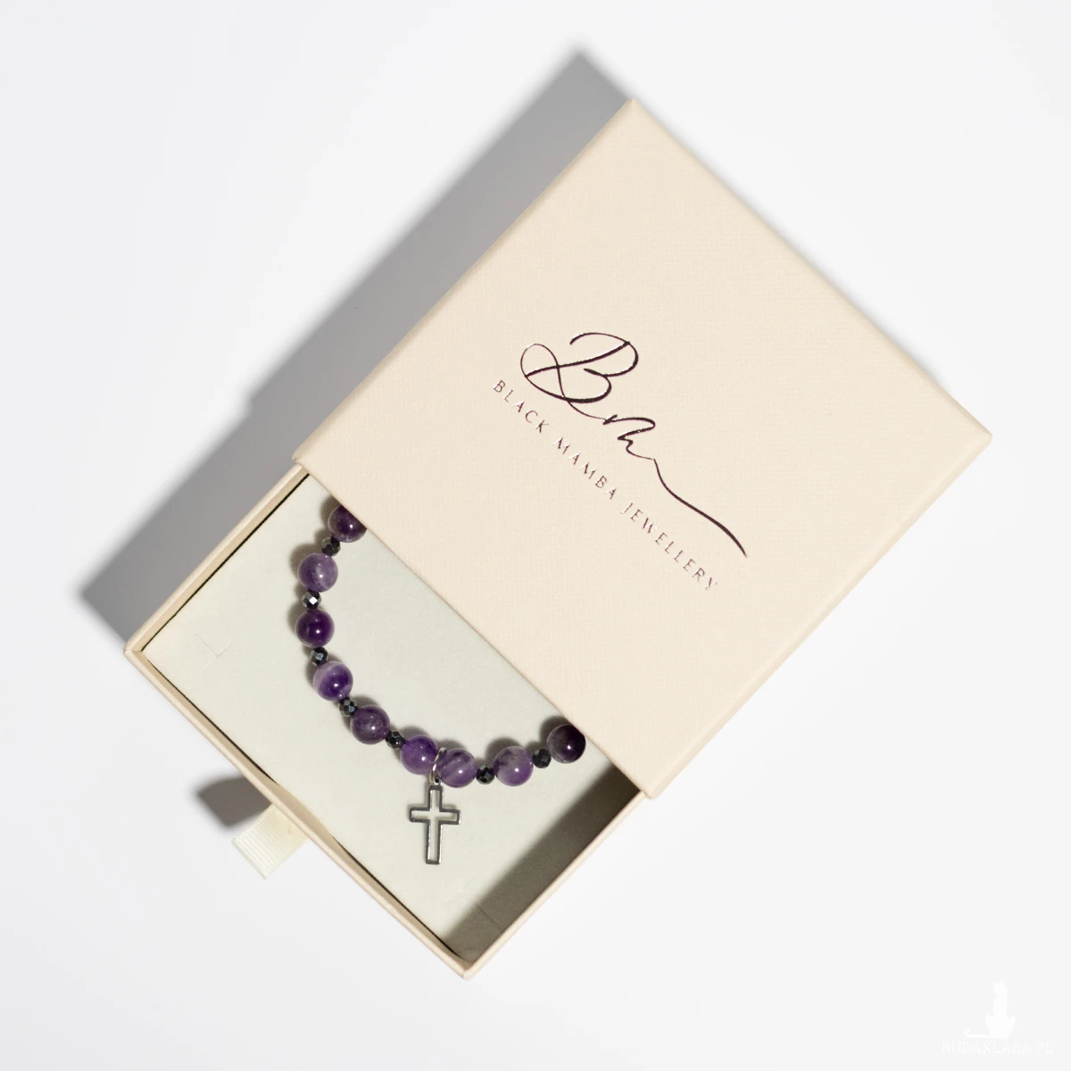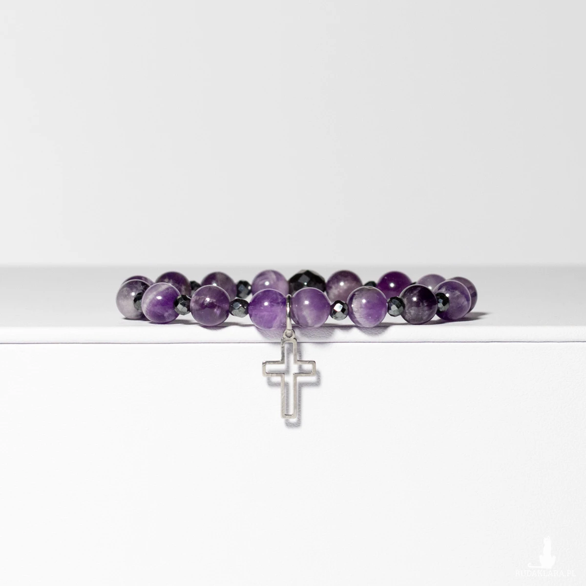 Hematyt natomiast symbolizuje stabilność, odwagę i ochronę, nadając bransoletce wyjątkowy balans między subtelnością a siłą. Krzyżyk ze stali szlachetnej dopełnia całość eleganckim, błyszczącym akcentem o ponadczasowym znaczeniu.