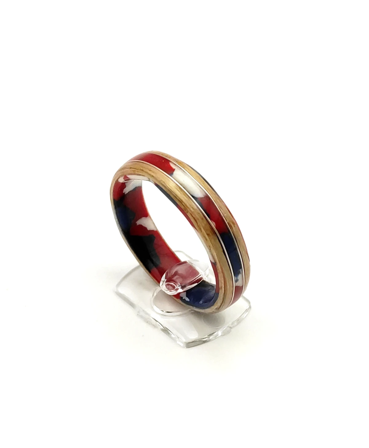 Tętno Koloru – pierścionek z drewna bukowego z kolorowym celuloidem