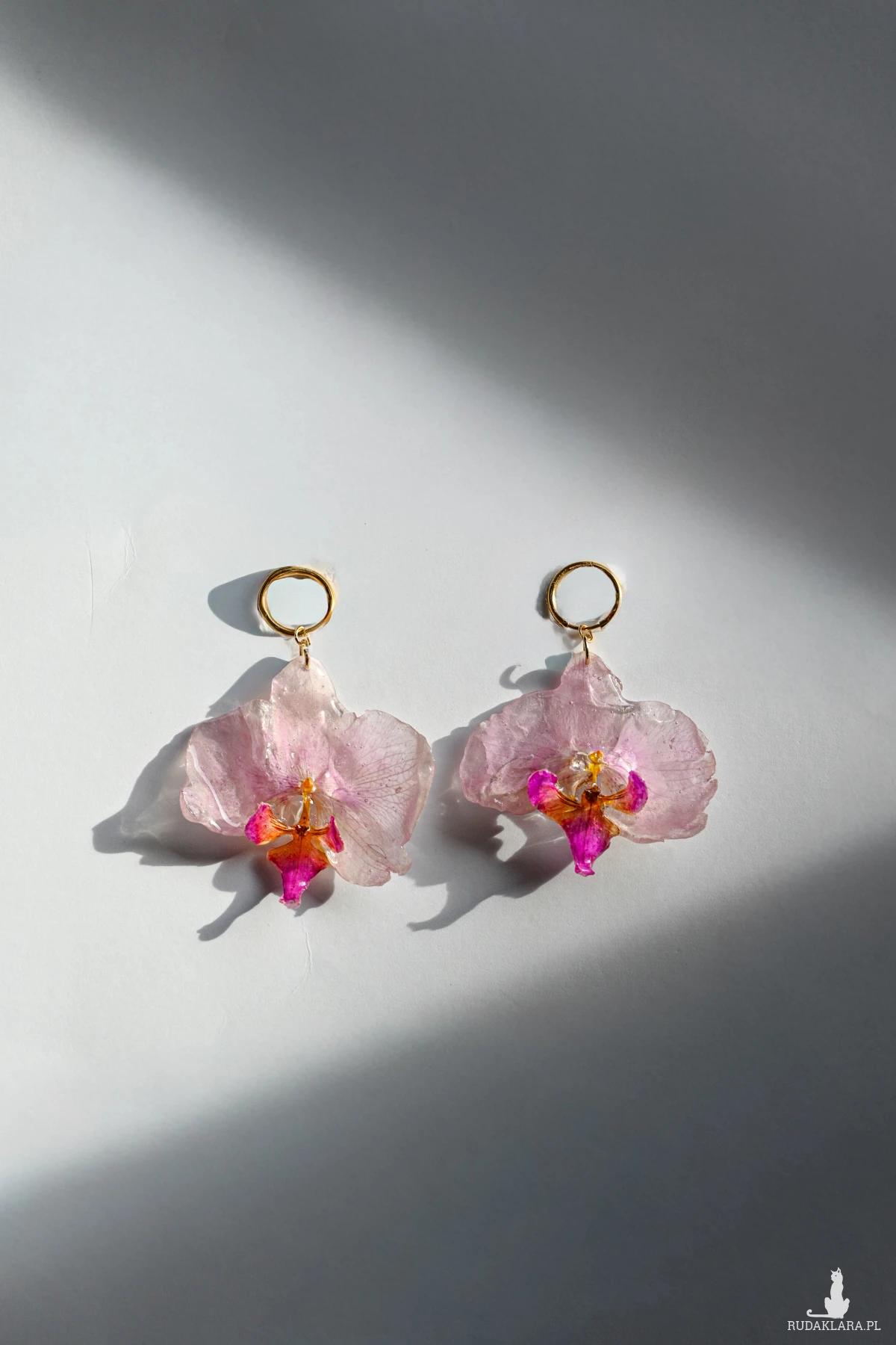 Kolczyki z prawdziwą orchideą to unikatowa biżuteria dla miłośniczek natury i delikatnego piękna. Każda para powstaje z autentycznych kwiatów storczyka, starannie zatopionych w krystalicznie przejrzystej żywicy. Kwiaty zachowują swoje kolory, strukturę i wyjątkowy charakter, co sprawia, że każdy egzemplarz jest niepowtarzalny.