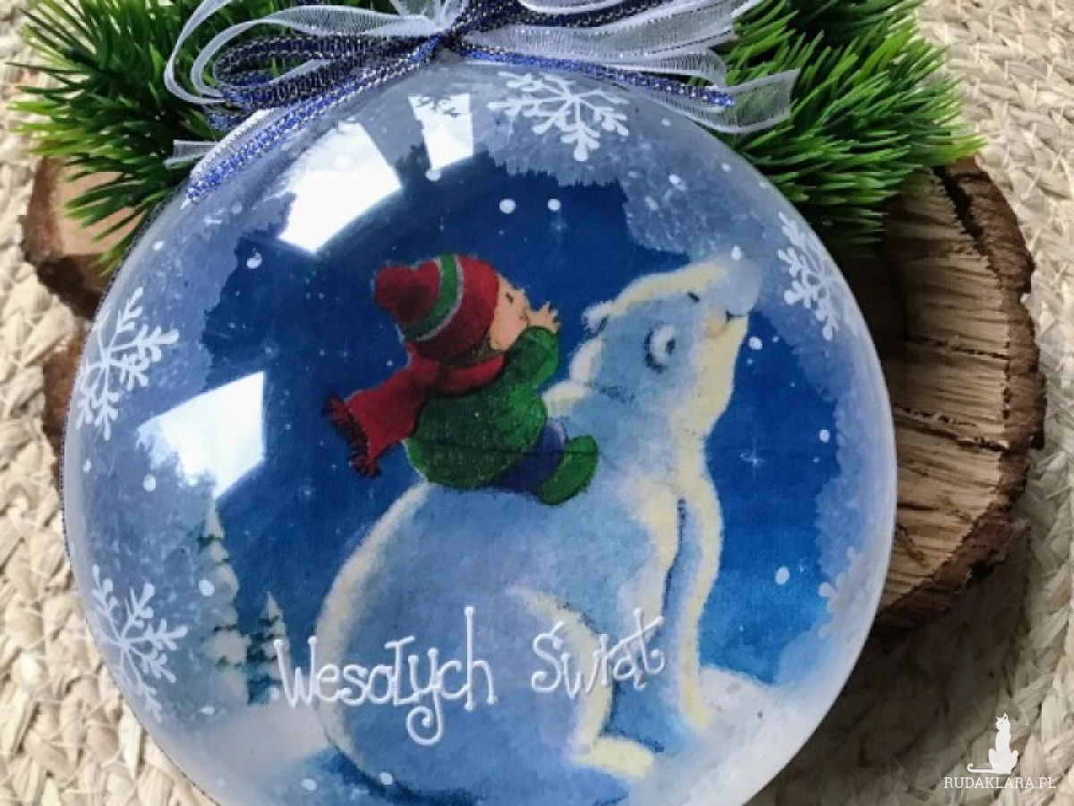Bombka - medalion, Decoupage miś to propozycja dla osób, które lubią nietypowe ozdoby świąteczne. Wykonana jest w technice decoupage, która pozwala na uzyskanie naprawdę ciekawych efektów dekoracyjnych. Bombkę możesz wykorzystać do ozdobienia drzewka bożonarodzeniowego. Dobrze będzie prezentować się ona również na specjalnym stojaku, który zostanie postawiony na wigilijnym stole. średnica medalionu 12 cm. Na zdjęciach pokazano dwie strony bombki medalionu. W tej postaci produkt gotowy do natychmiastowej wysyłki.