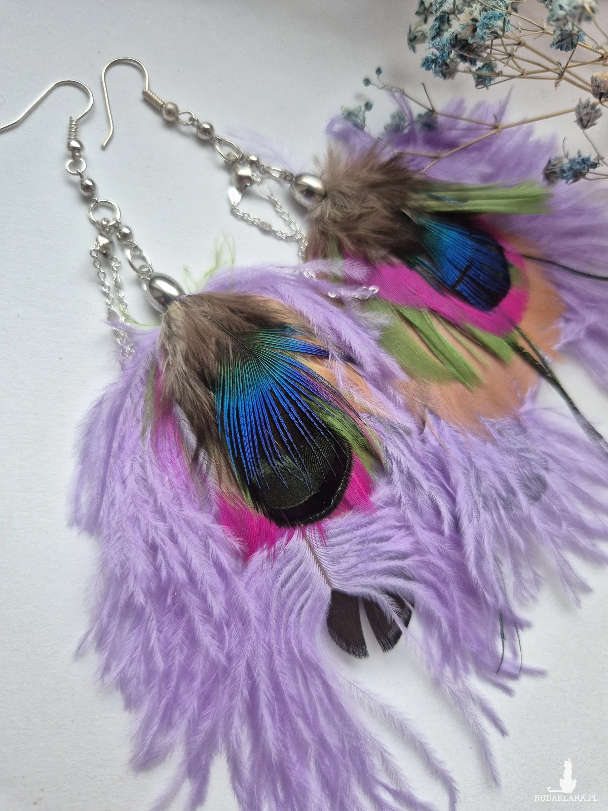 Kolczyki lekkie pióra Boho rękodzieło