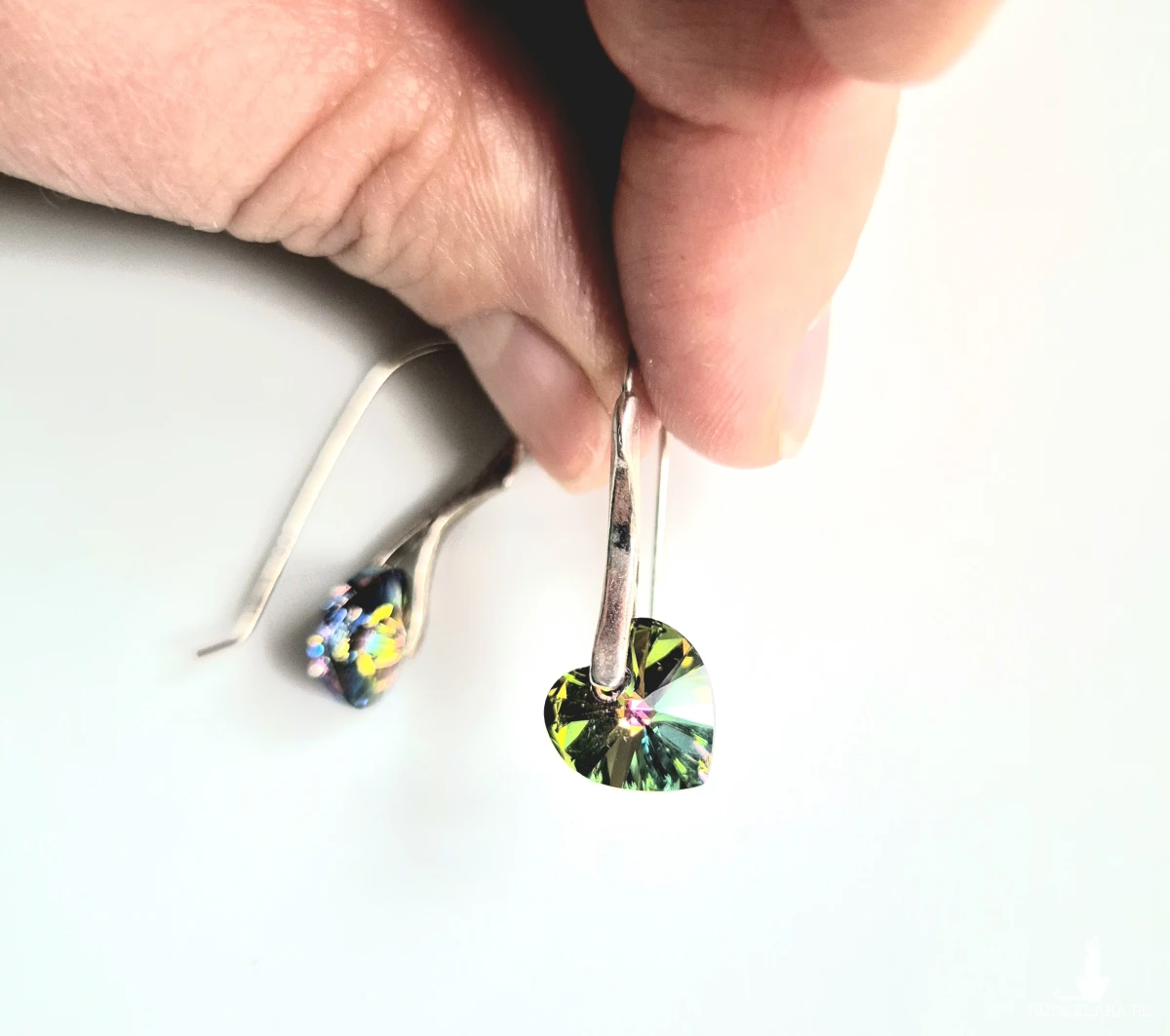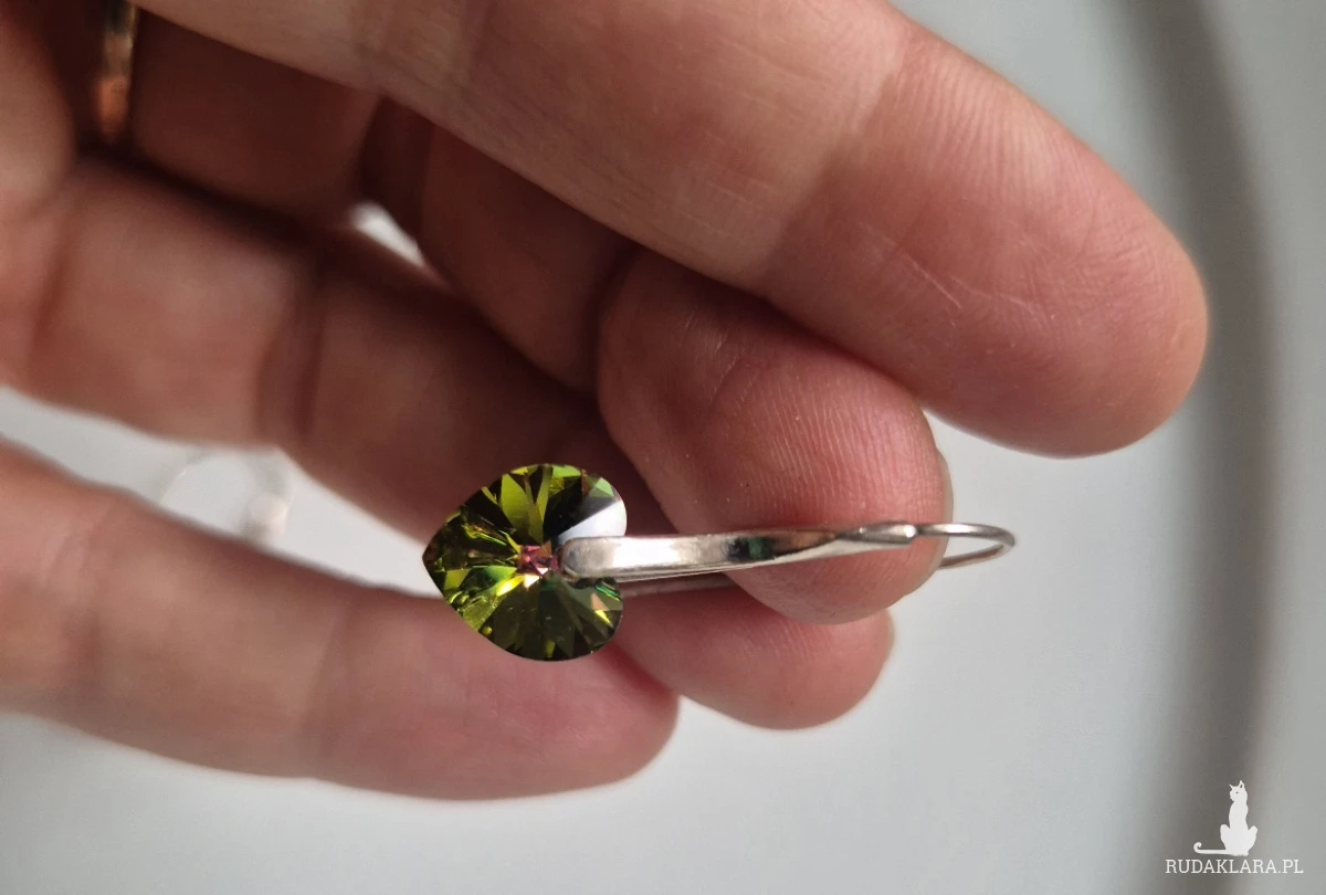 Kolczyki zielony kryształowe serca eleganckie wykonane w pojedynczym egzemplarzu Box L1