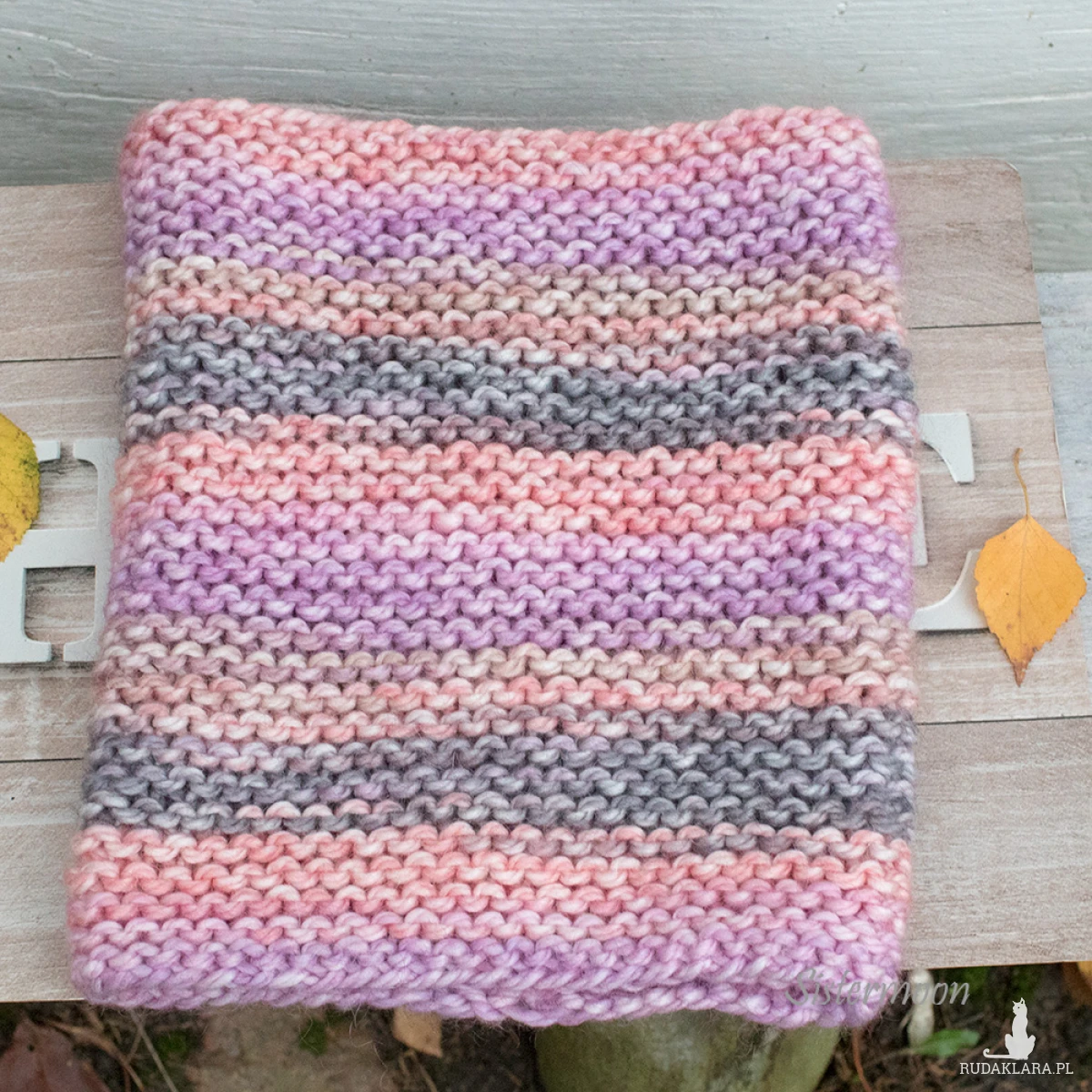 Otulacz rewelacyjnie ogrzewa, nie powinien podgryzać (jeśli jednak jesteś wrażliwsza na wełnę, wybierz raczej coś innego). Idealny na zimne dni. Można nosić do czapki lub opaski, można też w naprawdę zimny czas zakładać na głowę (na to kaptur – wersja eskimo ;)), spokojnie „ogarnie” szyję i głowę. Kolorystycznie dobrze współgra z czernią, szarościami, grafitem, bielą, brązem).